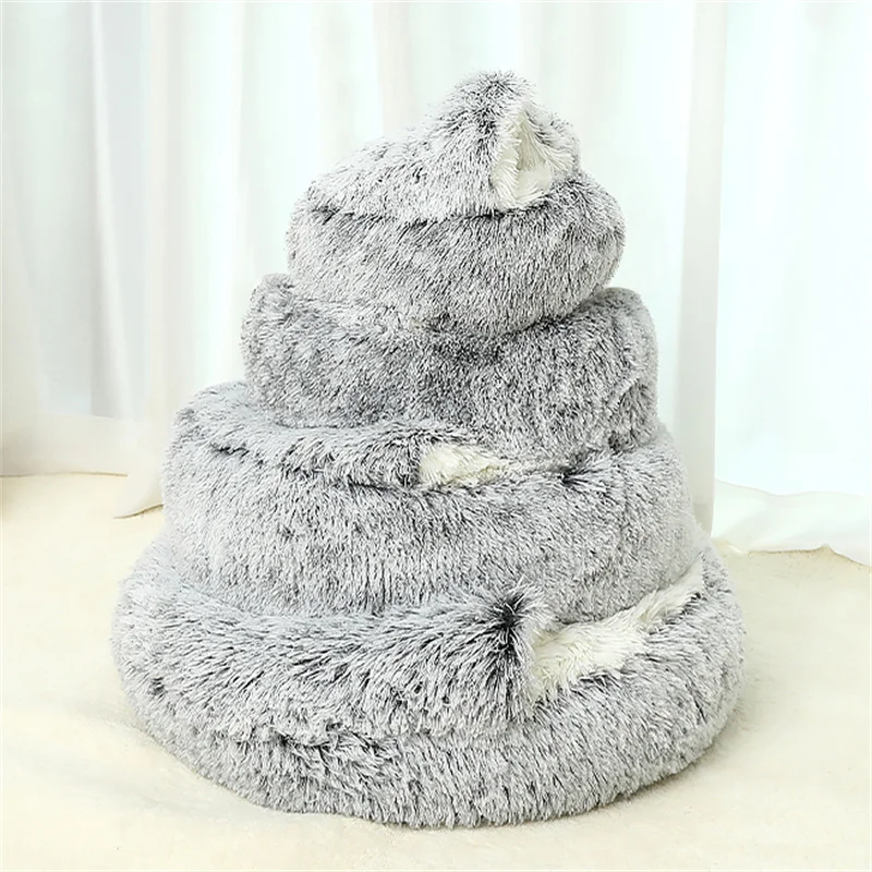 2021 зимняя длинная плюшевая кровать для питомца, круглая подушка для кошки, домик для кошки, теплый корзина для кошек, спальный мешок для кошек, гнездо для кошки, Конура для маленьких собак и кошек