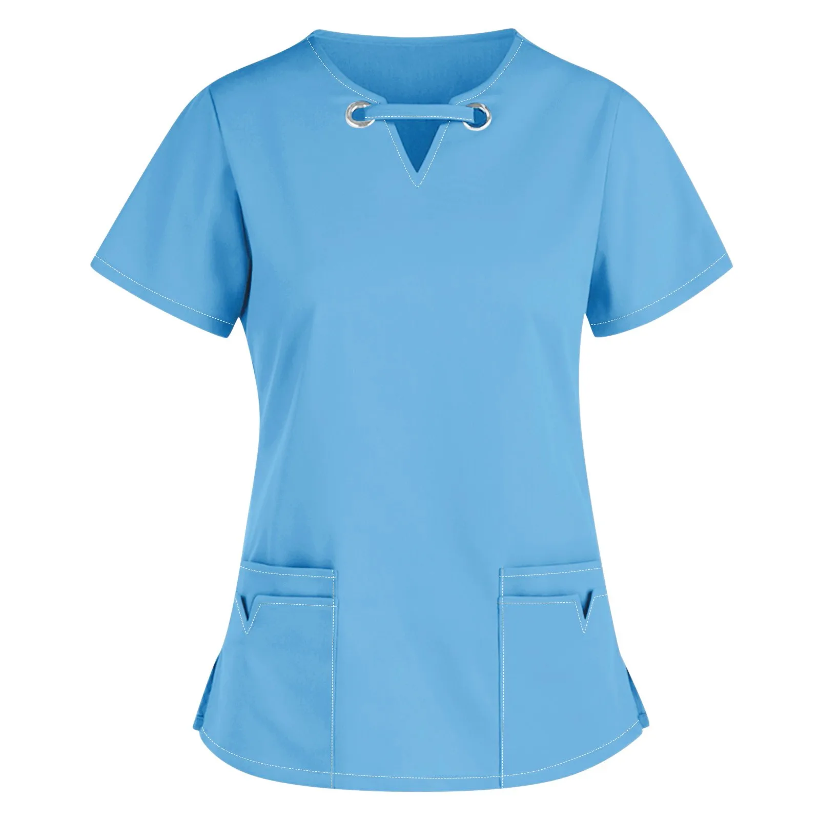 Женская однотонная блузка с коротким рукавом и V-образным вырезом