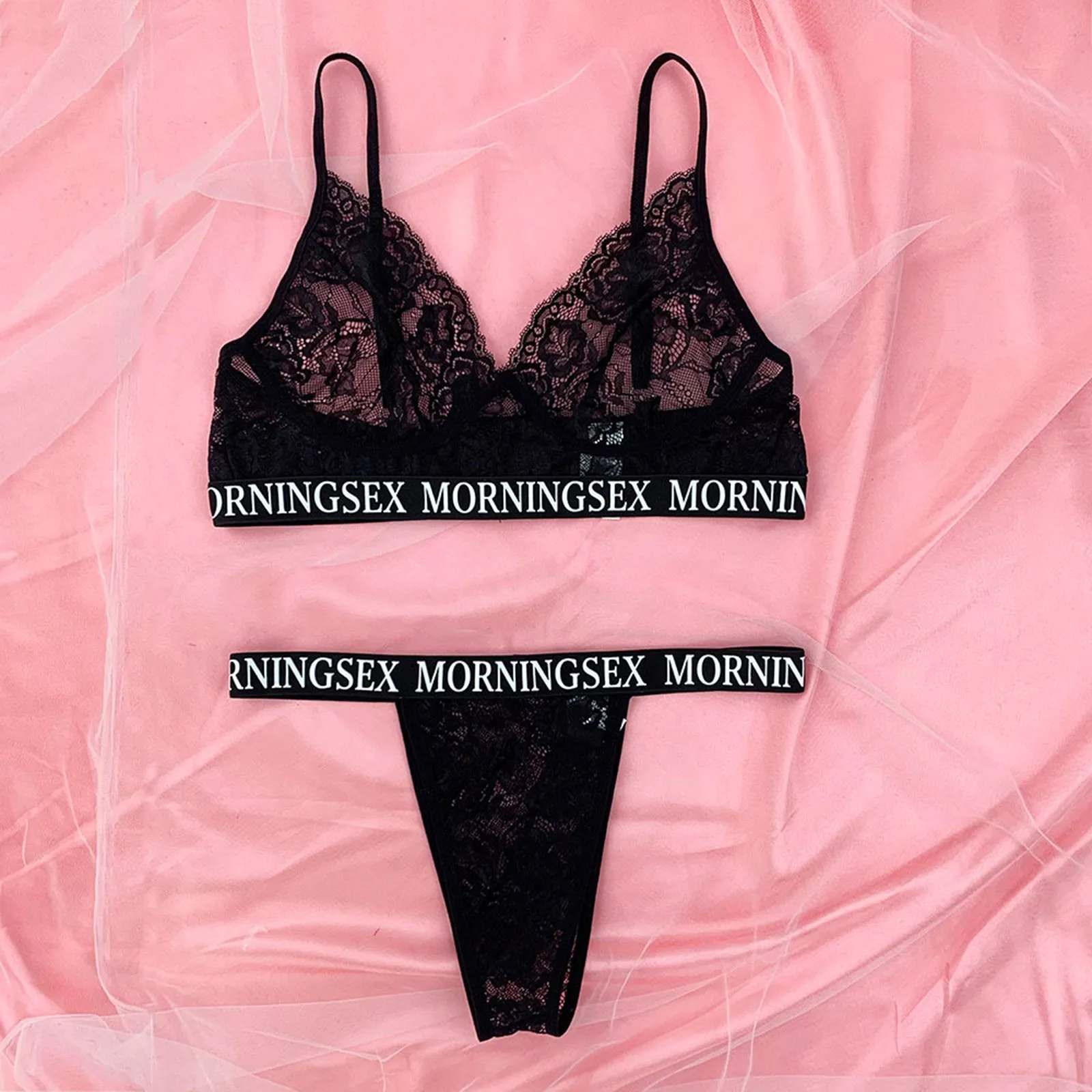 Сексуальное женское нижнее белье, комплект из бюстгальтера пуш-ап и трусиков, нижнее белье с надписью, бюстгальтер, стринги, трусики, комплект ночного белья #108