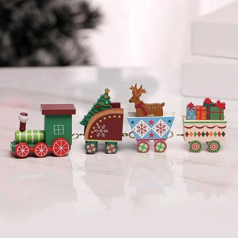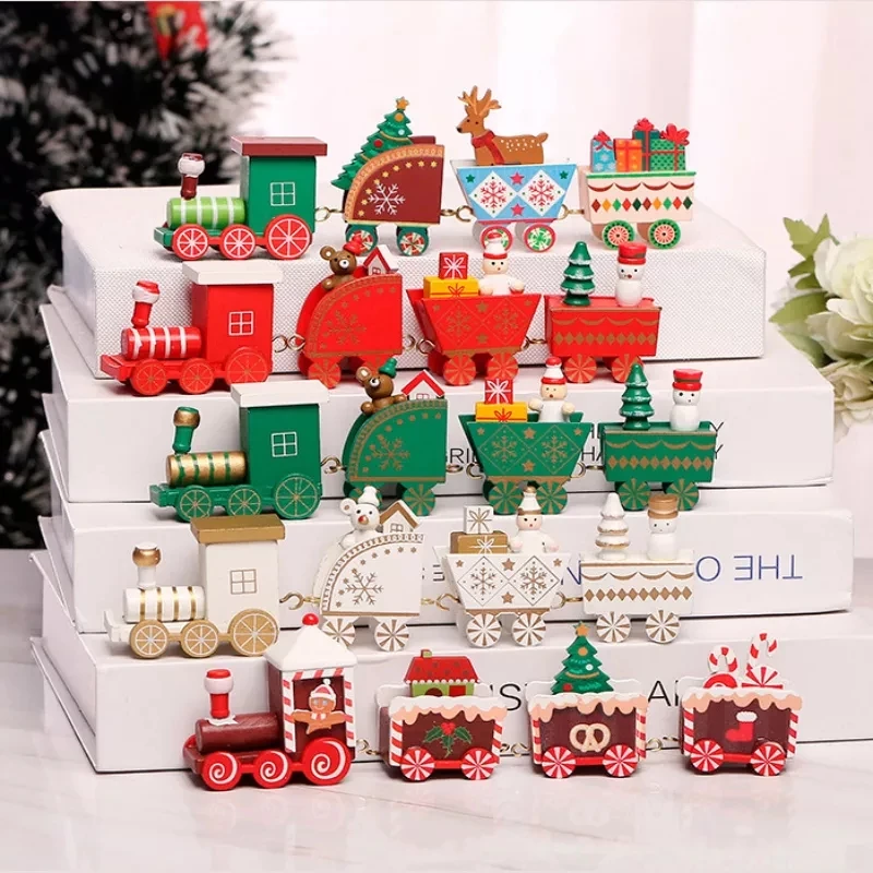 Деревянный Рождественский маленький поезд, рождественские украшения...