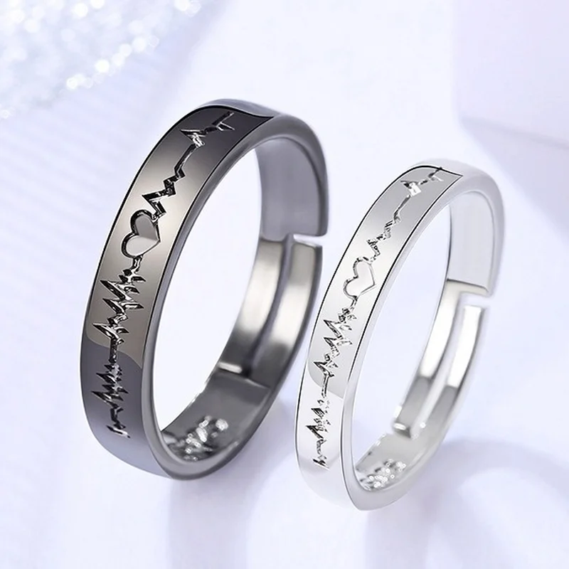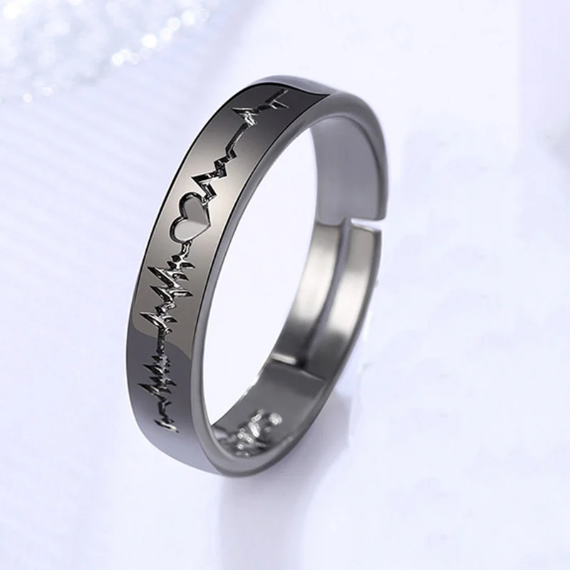 Парные кольца с надписью парные кольца 2 шт. черно-белые ЭКГ живые рот пара мужчин и женщин корейские простые оптовая продажа