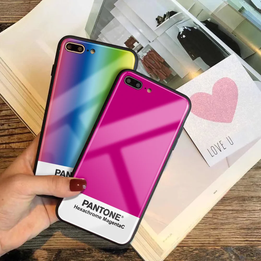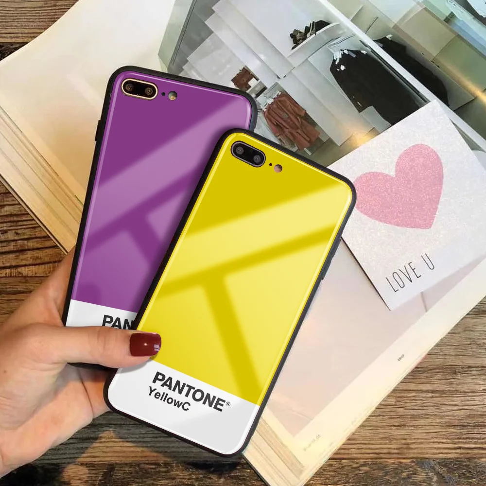 Чехол для телефона из закаленного стекла под заказ для IPhone 11, 12, 13 Pro MAX, 7Plus, X, 6S Plus, чехол для телефона Pantone для IPhone XS, XR, 8 цветов, 9H