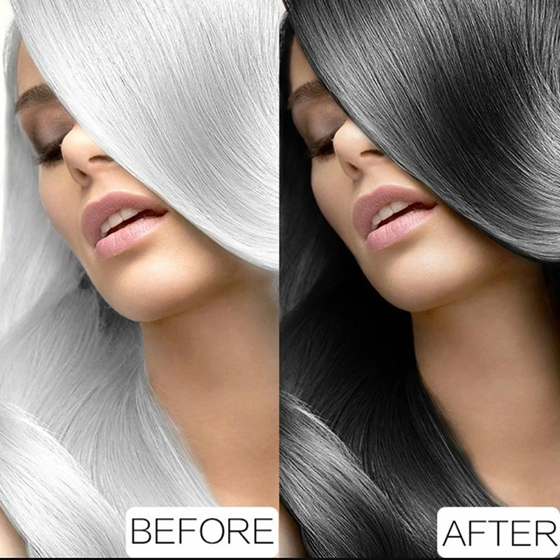 ✔• Восстанавливает Естественный Цвет волос: нанесите как обычный шампунь на каждый день и посмотрите на превращение ваших серых или белых волос в молодой и яркий темный цвет.