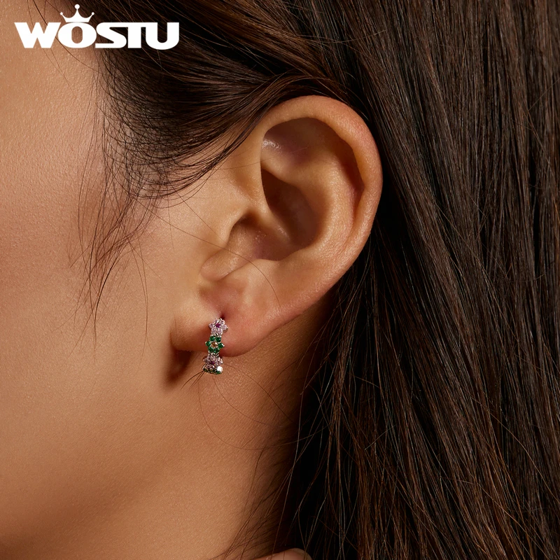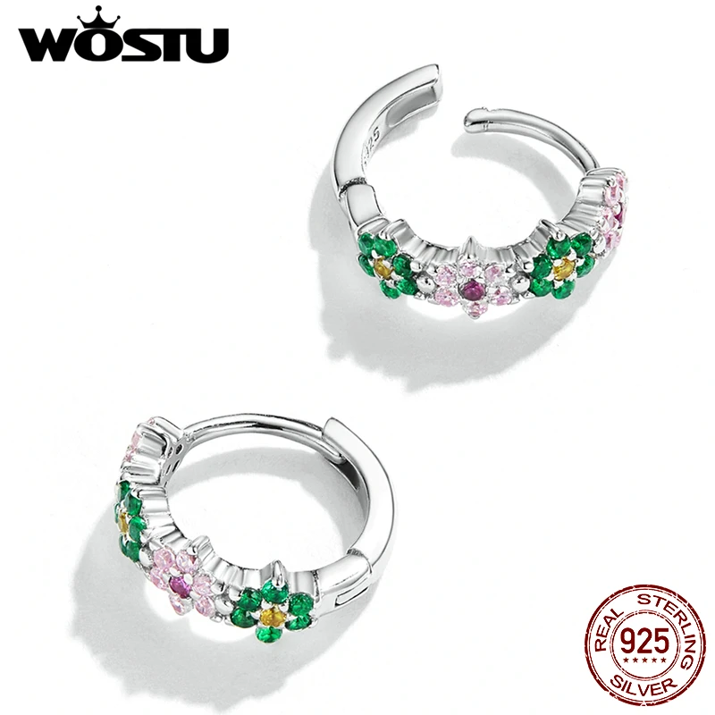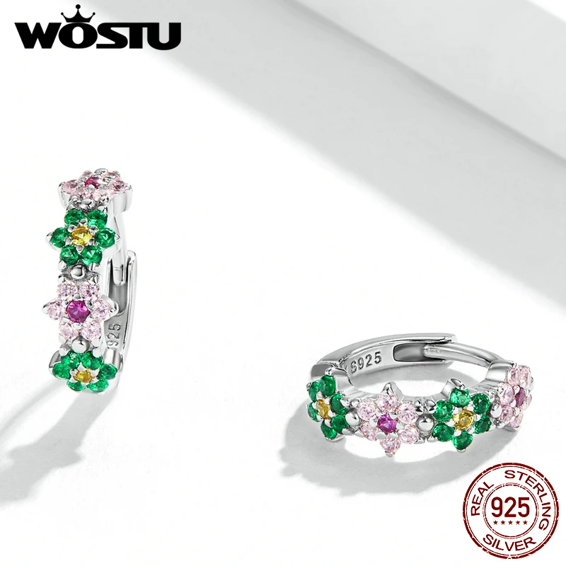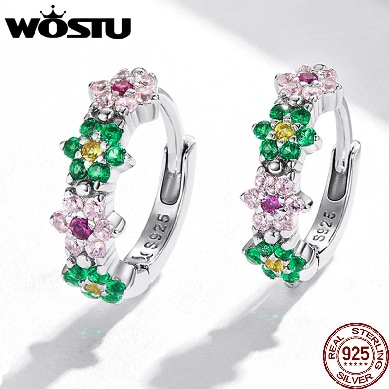 WOSTU Настоящее серебро 925 пробы, весенний цветок, разноцветный циркониевый, для женщин, для свадебной вечеринки, хорошее ювелирное изделие, подарок для женщин, FICE1320, новинка