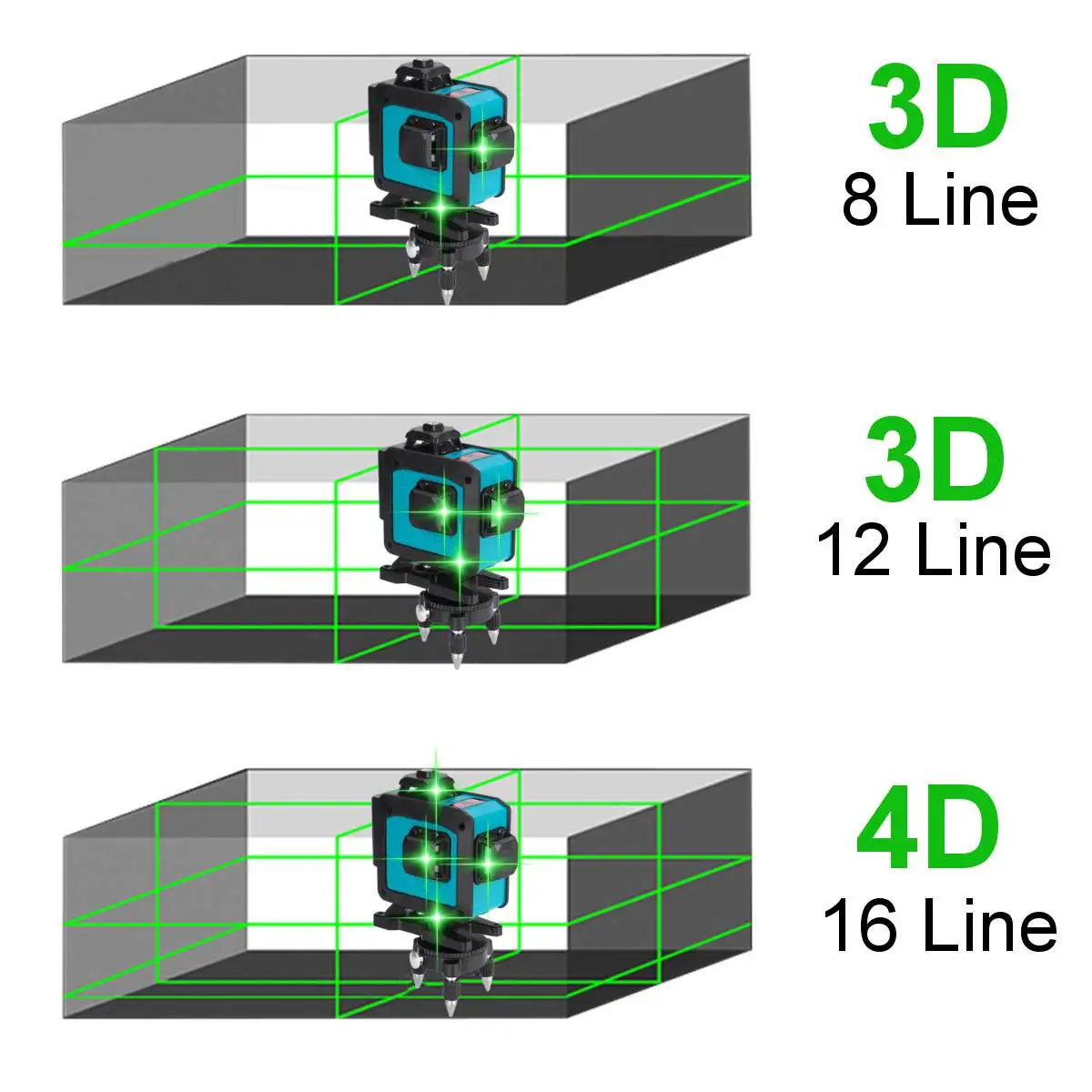 Лазерные линии: 16 (4/8/12/16 линия регулируется)