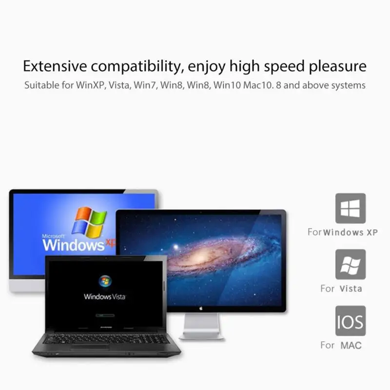 【Широкая Совместимость 】 широко совместима с WINXP, VISTAWIN7, WIN8, WIN8.1WIN10, MAC10.8 и выше.