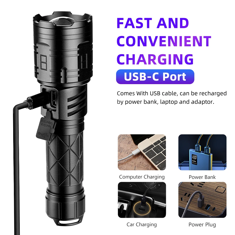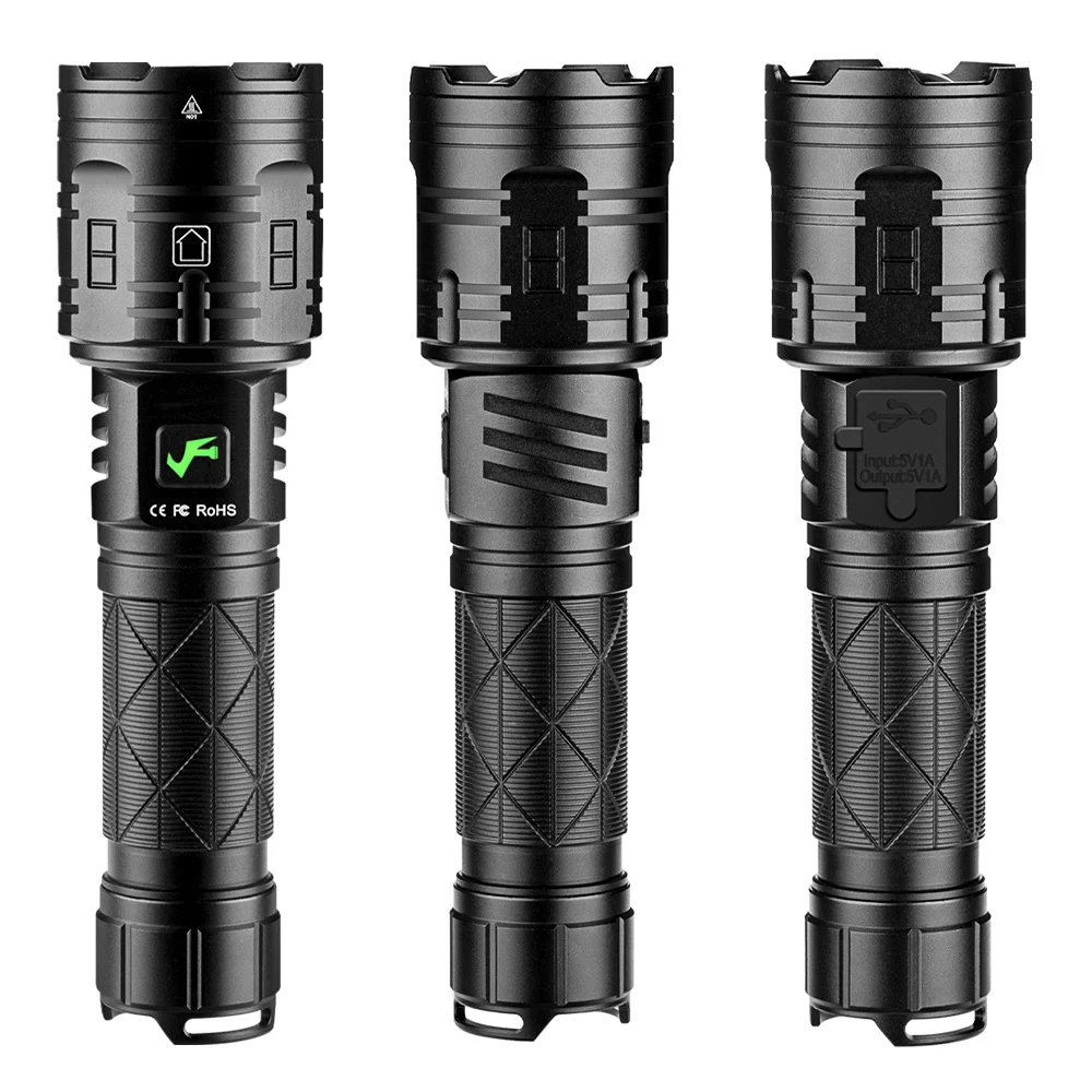 Посылка A:1 * фонарик с высоким люменом1 * USB кабель для зарядки1 * Руководство пользователя* Аккумулятор в комплект не входит *Посылка B:1 * фонарик с высоким люменом1 * USB кабель для зарядки1*26650 аккумуляторная батарея1 * Руководство пользователя