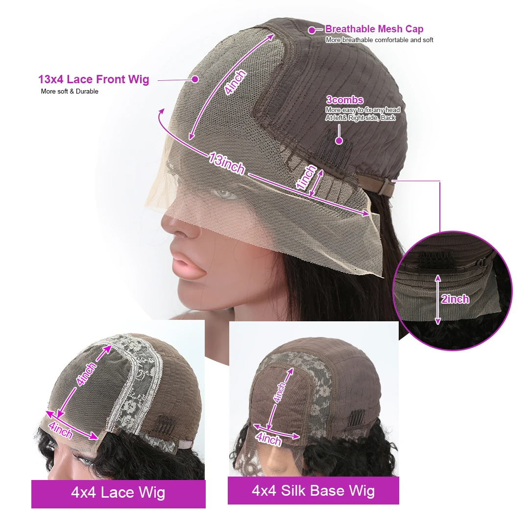 Бразильский Волнистый короткий парик 13х4 с волнистыми волосами, парики из человеческих волос, кудрявый Боб, шелковая основа, 4x4, парик для женщин