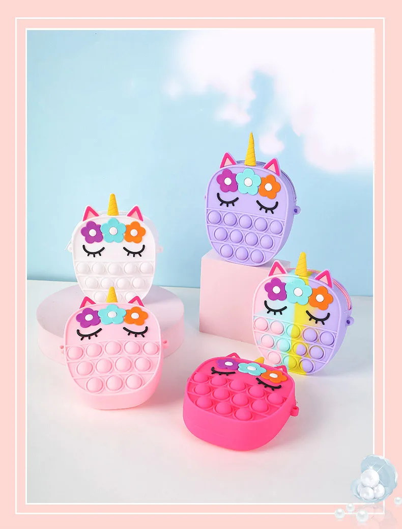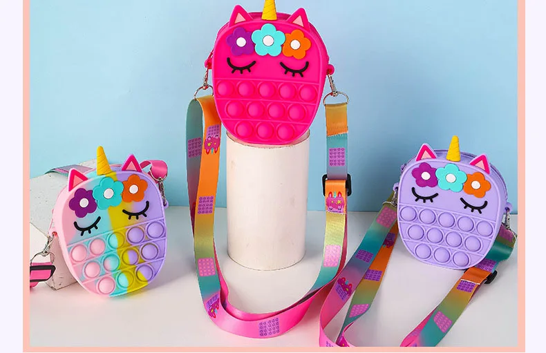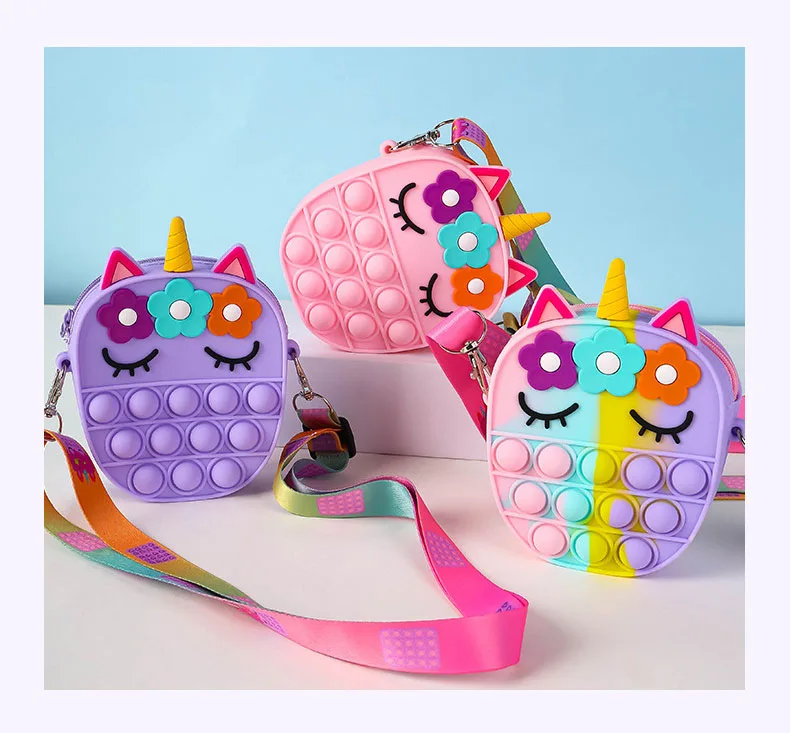 Новые игрушки-антистресс, игрушка с пузырьками, Радужный Единорог, кошелек для монет, женская сумочка из силикона, простые сумки через плечо для девочек