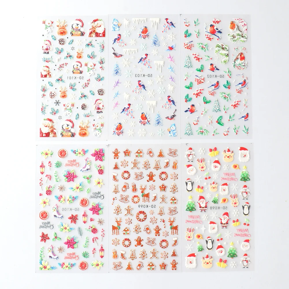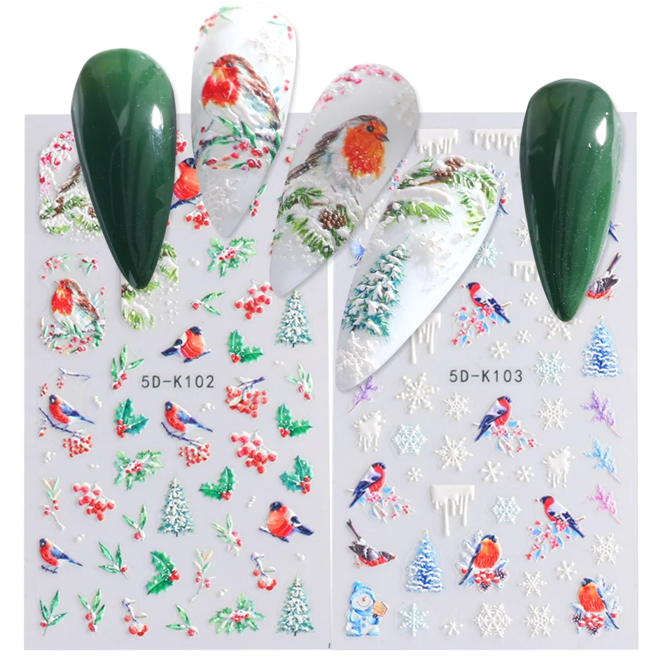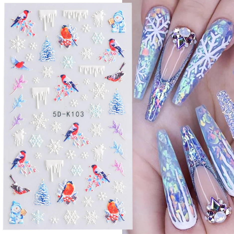 5D тисненые дизайнерские наклейки и Переводные картинки Новогодние украшения для ногтевого дизайна птица снежинки акриловые слайдеры аксессуары для маникюра