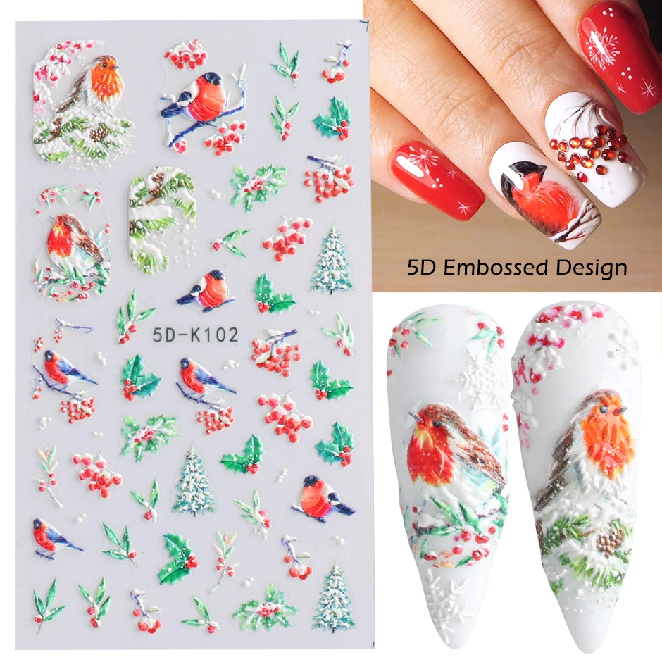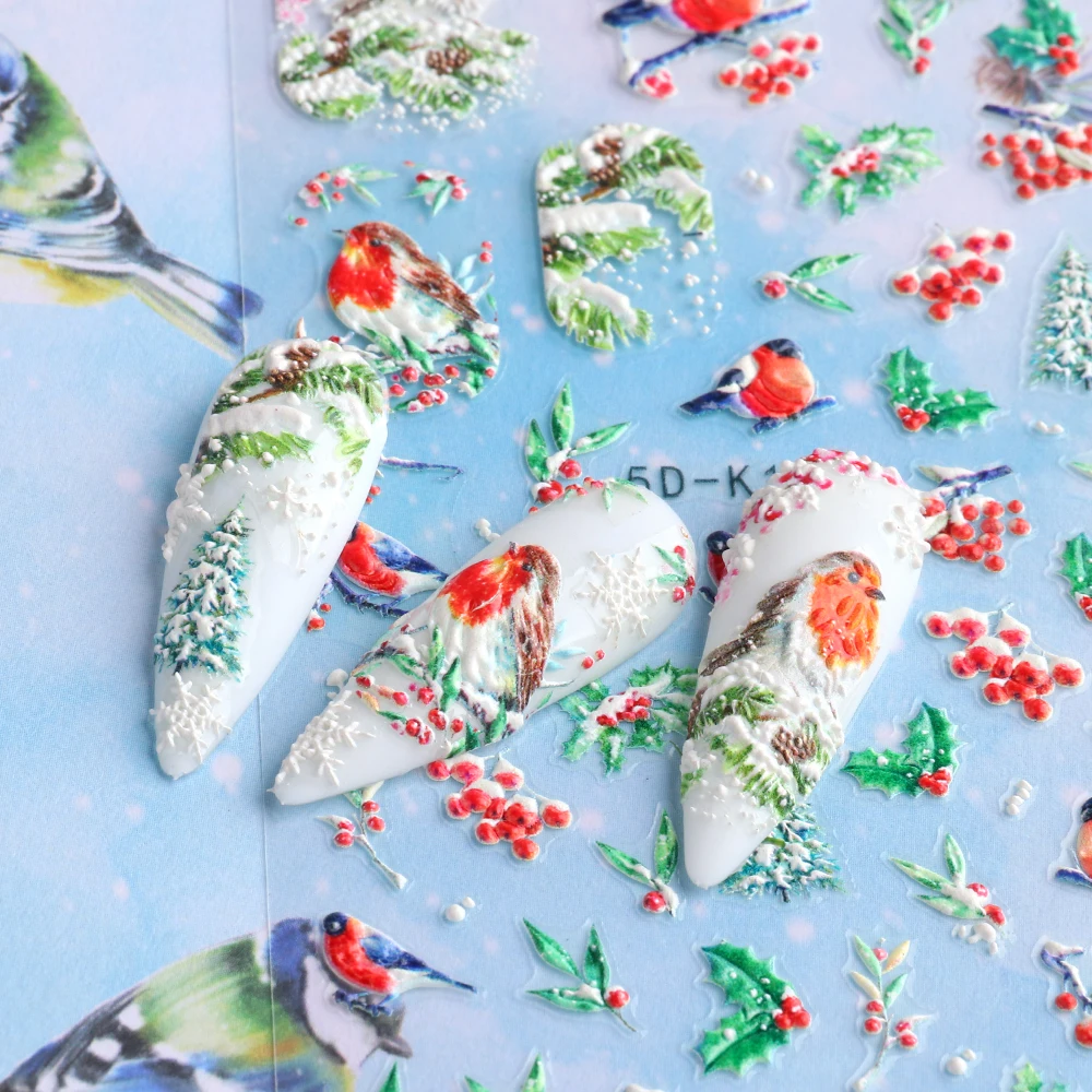 Рождественская птица 5D художественные тисненые наклейки для ногтей...