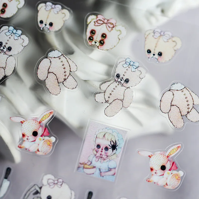 Слайдеры для ногтей в черном стиле на Хэллоуин, наклейка с медведем, бабочкой, страхом, раньше для ногтей, дизайн марионетных глаз, Прямая поставка, T1105