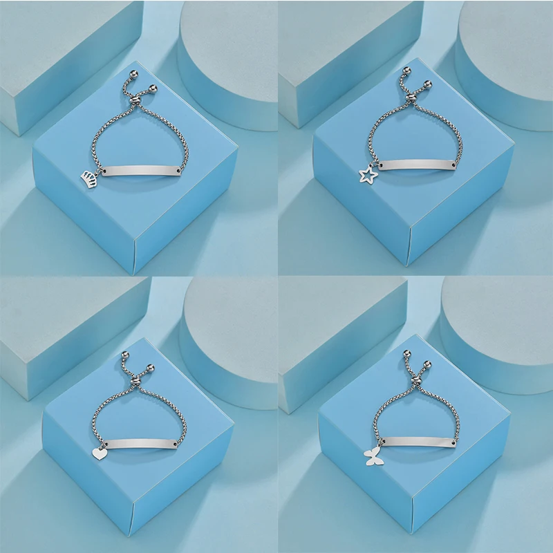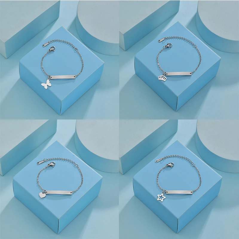 Название:Goxijite на заказ гравировальный именной браслет для женщин детей из нержавеющей стали сердце Корона Бабочка звезда гравировка Дата браслеты подарок