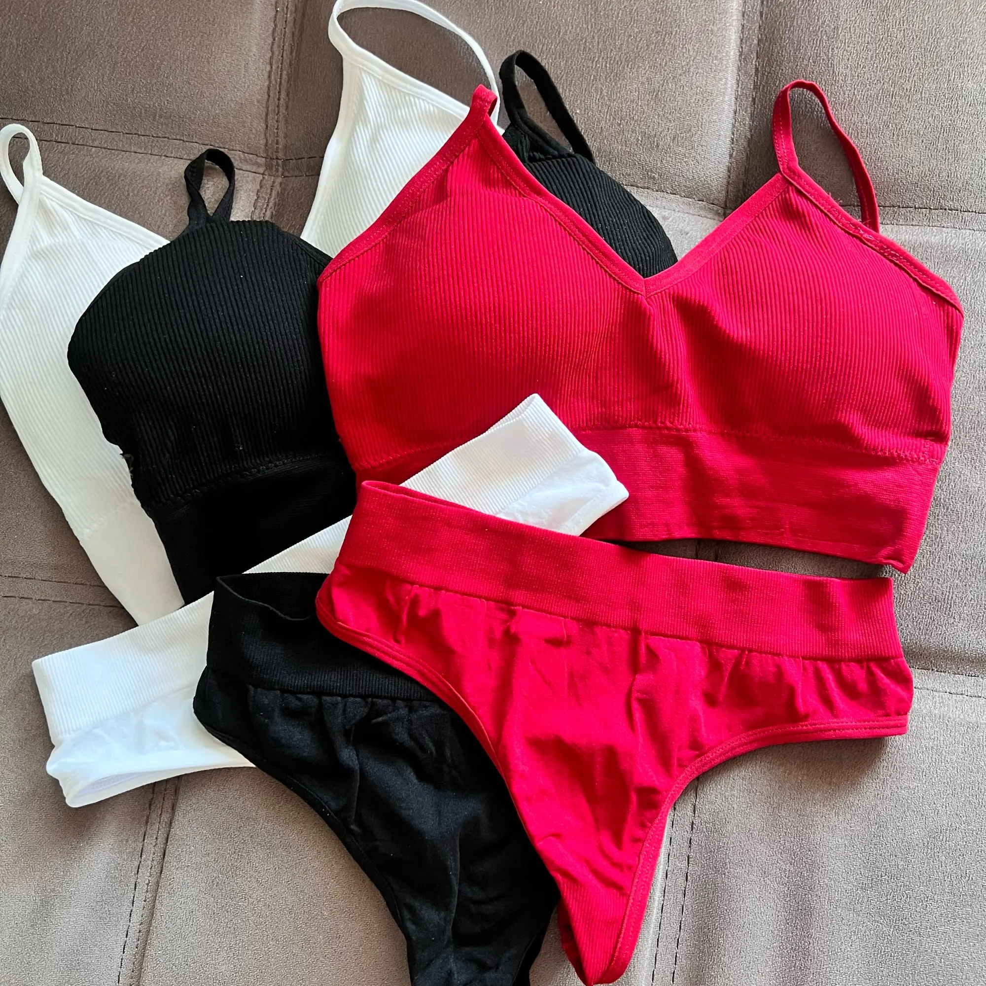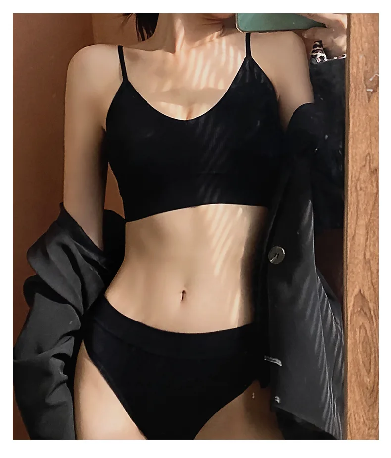 Комплект женского Бесшовного нижнего белья, пикантные трусики-стринги с заниженной талией, бюстгальтер без косточек, Бралетт, хлопковое нижнее белье