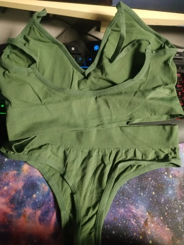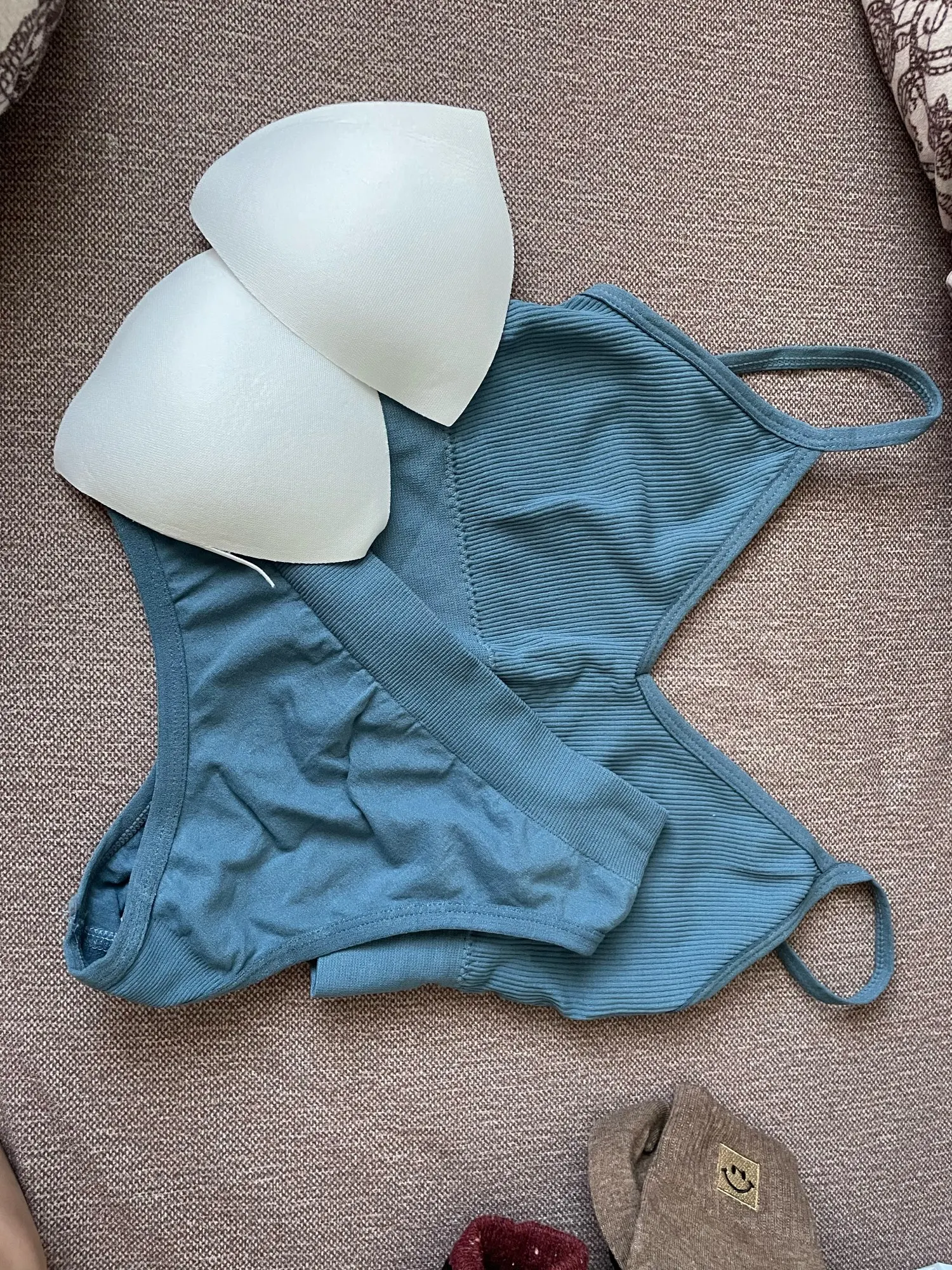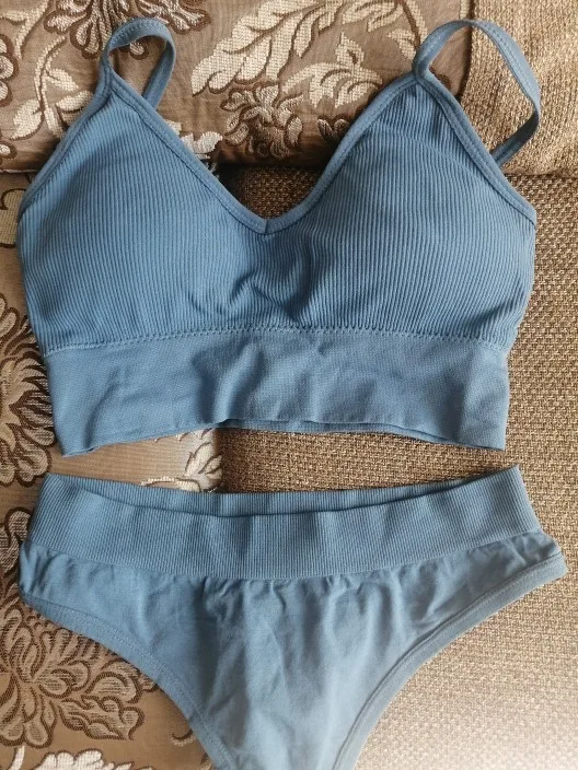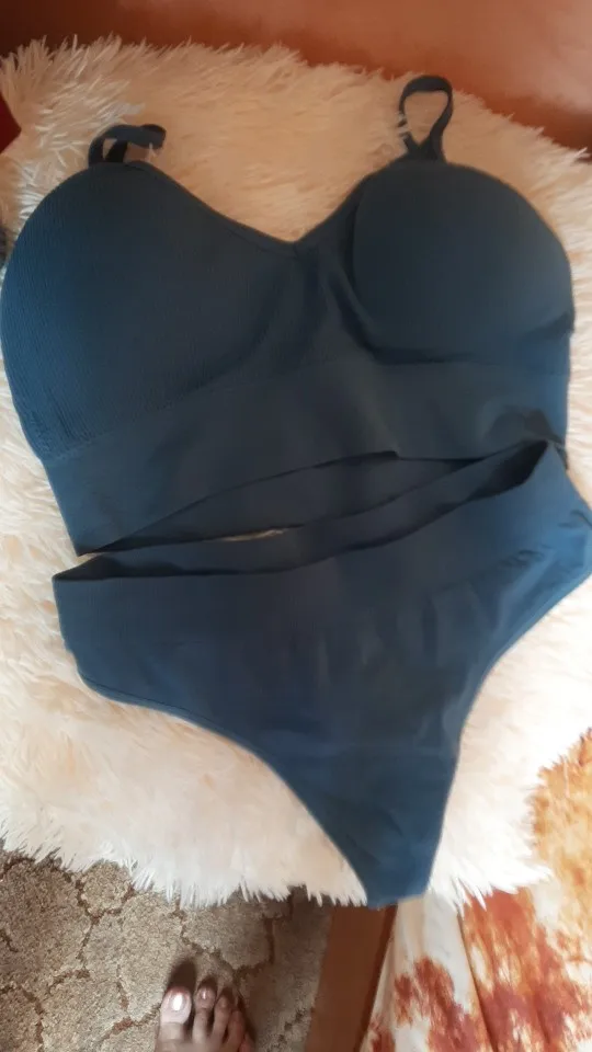 Получила вчера товар, шёл не отслеживаясь практически 1,5 месяца. Дойдёт не дойдёт для меня до последнего было загадкой. В целом хороший комплект, брала его в принципе из-за топа чтобы можно было надевать под пиджак, в целом отлично, удобный, за счёт паралоновых чашек ничего не торчит и все отлично поддерживается. На свой 46 размер и об 99-100 взяла л размер, а можно было бы взять хл, чтобы вовсе хорошо все село без какого-либо дискомфорта. Потому что с трусиками на али всегда беда, верх комфорт, а вот трусы малы, поэтому делайте на это скидочку.