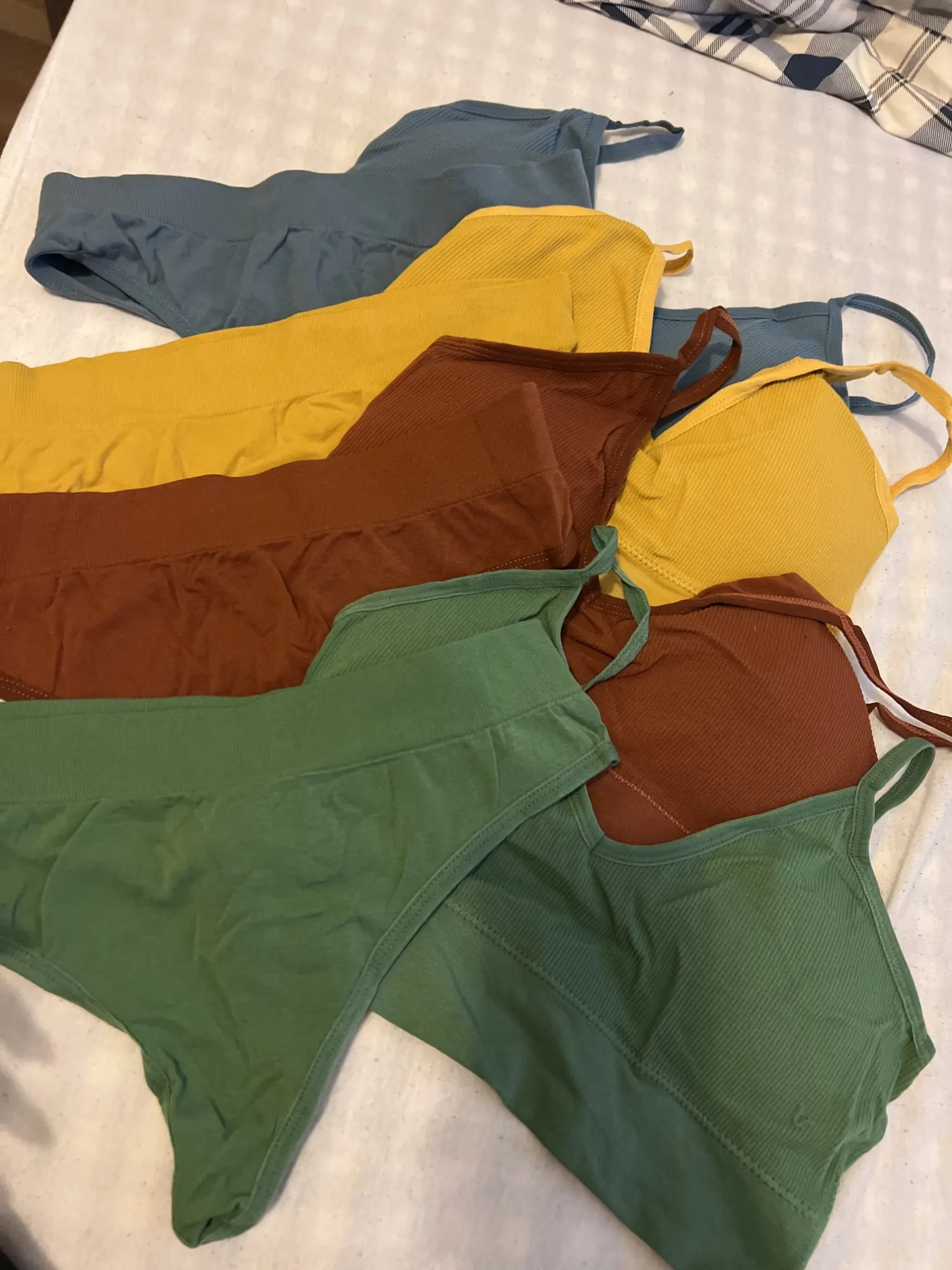 Эластичное бельё, хорошо тянется, мягкое и приятное наощупь; цвет горчично-жёлтый. На параметры ОГ 93 (под грудью 83) - ОТ 74 - ОБ 105 село хорошо, но на пределе комфорта, особенно трусики. Тем не менее, комфортно
