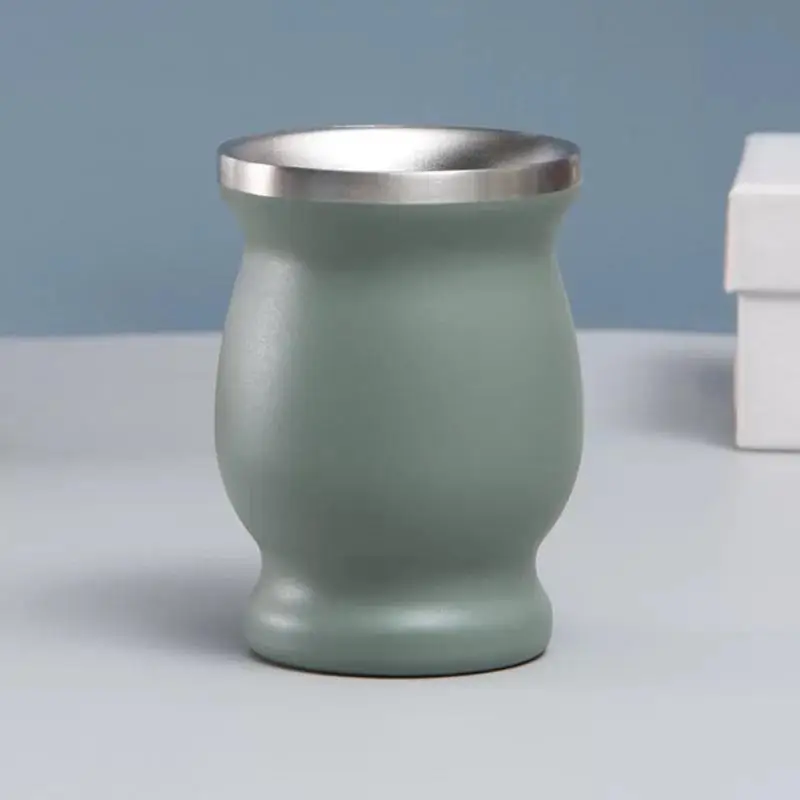 Чайный набор Yerba Mate из натуральной тыквы, 8 унций, матовая чайная чашка из нержавеющей стали, чашка с двойными стенками, Легкая очистка, набор чайных чашек