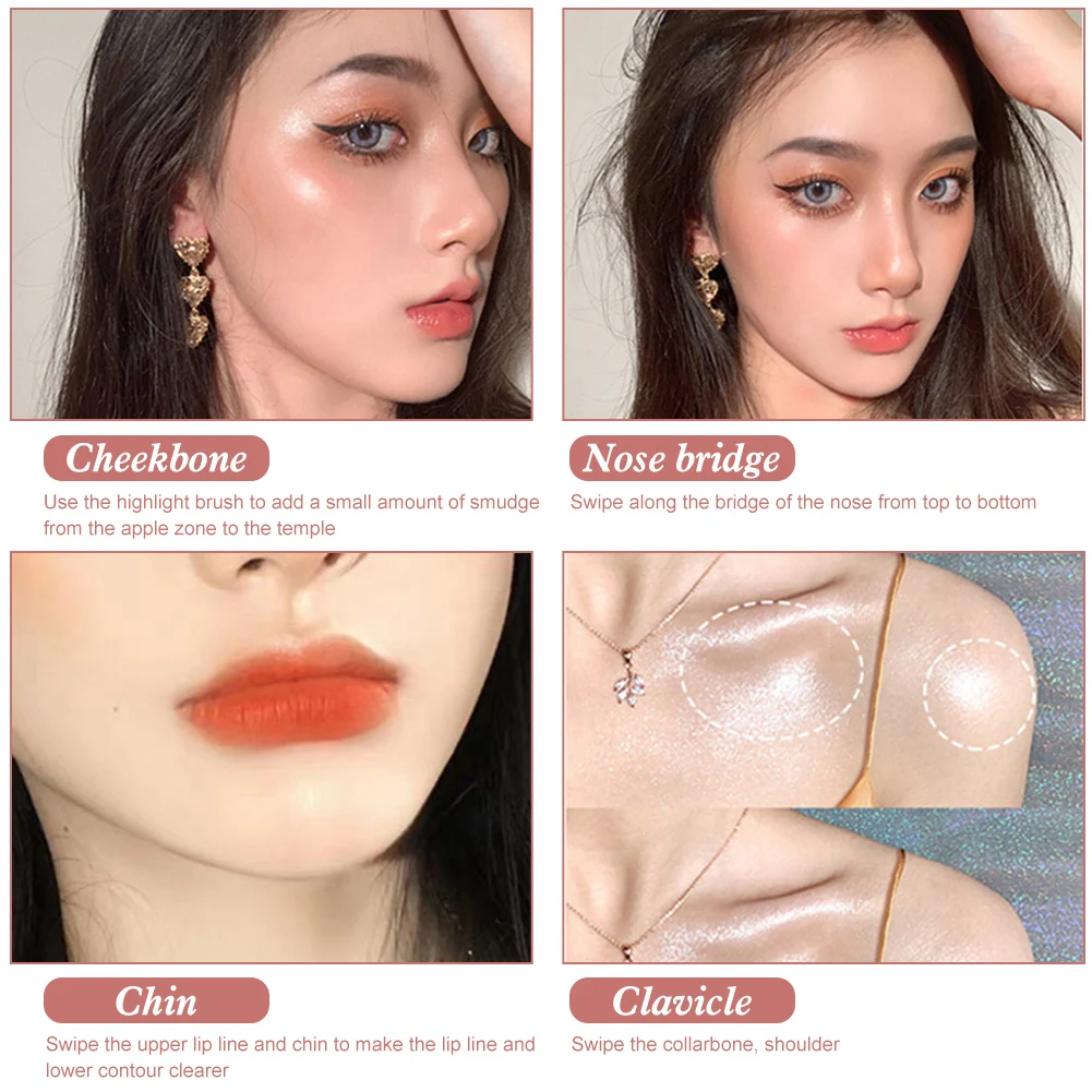 * 3. Он может быть нанесен на скулы, нос, подбородок, ключицу и другие части, чтобы показать ваши основные моменты.