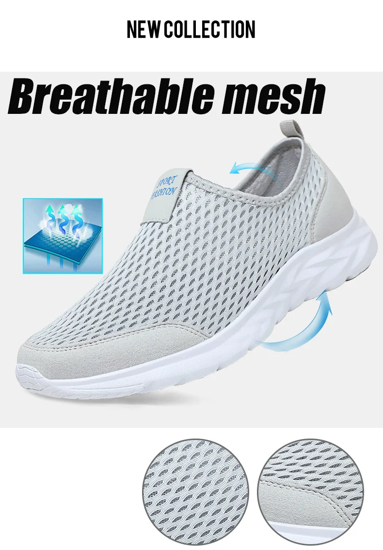 Мужская Летняя обувь, повседневная легкая обувь, дышащие сетчатые кроссовки, мужские удобные слипоны, уличные модные мужские кроссовки
