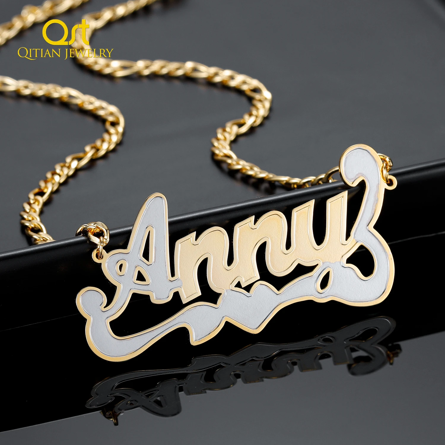 Индивидуальное ожерелье из нержавеющей стали с именем, двойное позолоченное ожерелье с именем на заказ, очаровательные ювелирные изделия для женщин