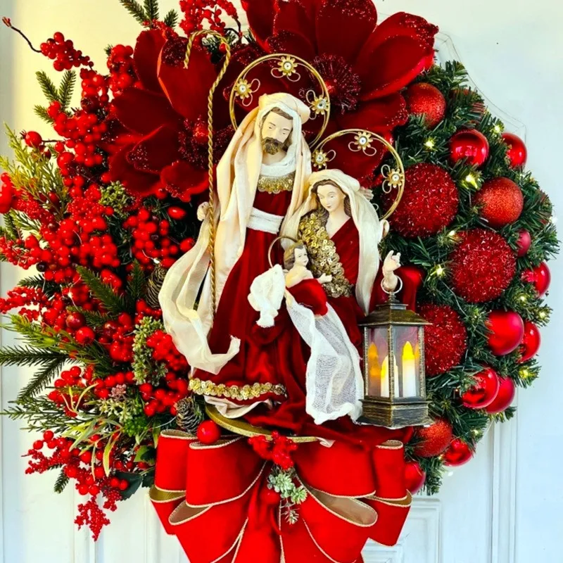 Священный Рождественский венок с подсветкой, подвесное украшение дл...
