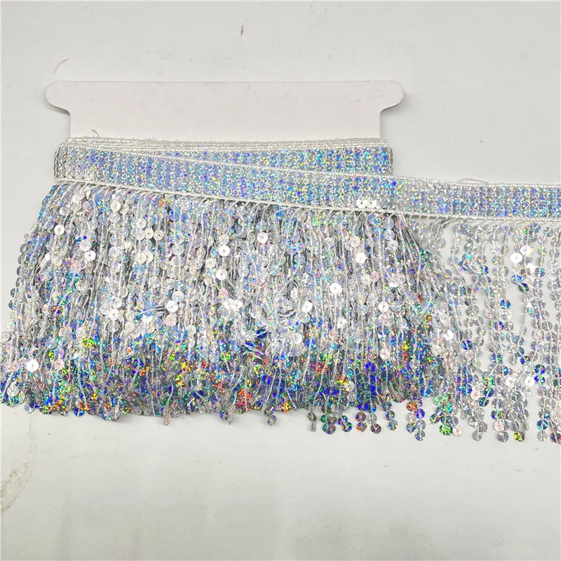 10 ярдов/партия Красивые блестки Серебряная бахрома отделка 15 см ширина для DIY танцевальные аксессуары платье кружевная лента