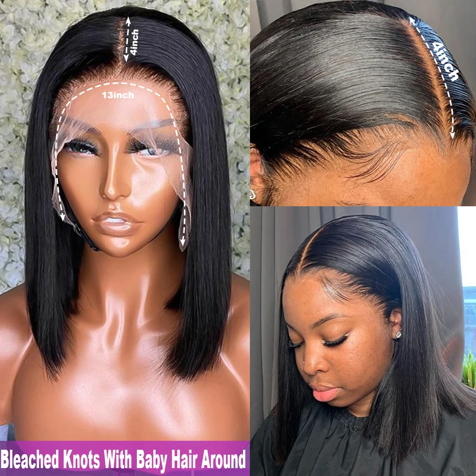 Короткий парик с Бобом, кружевной передний парик, 13х4, прямой парик с кружевом спереди, предварительно выщипанные отбеленные узлы, 4x4, шелковая основа, парик для женщин