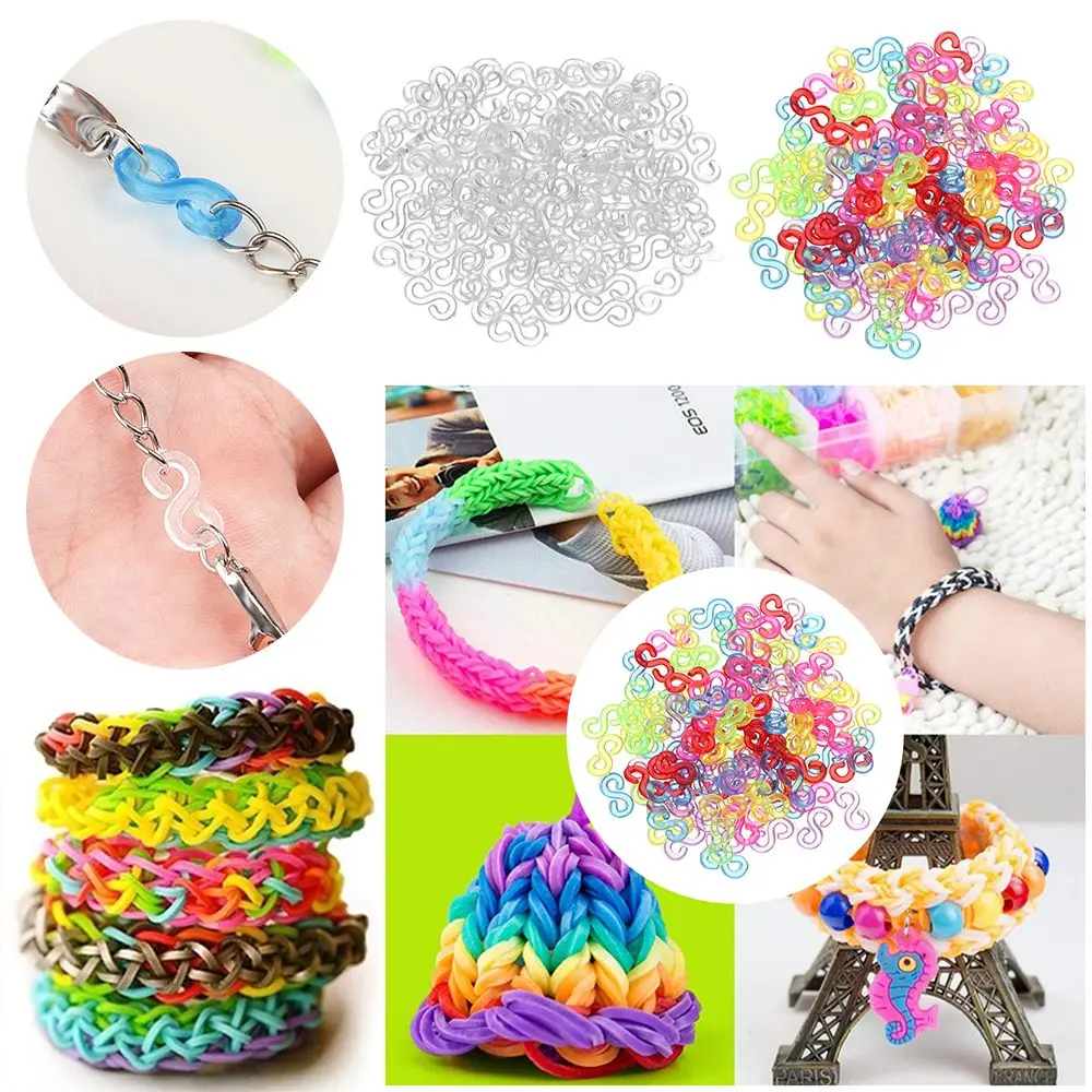 Разноцветные Пластиковые S-образные зажимы 100 шт., застежка для детского резинового ткацкого станка, аксессуары для изготовления ювелирных изделий своими руками