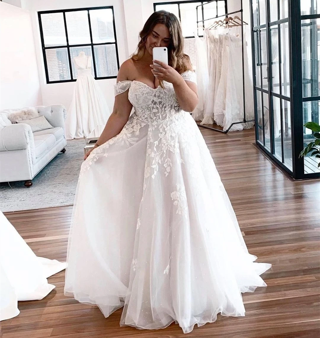 Женское свадебное платье трапециевидной формы, с открытыми плечами и кружевной аппликацией, очаровательное женское свадебное платье принцессы, индивидуальное платье для невесты