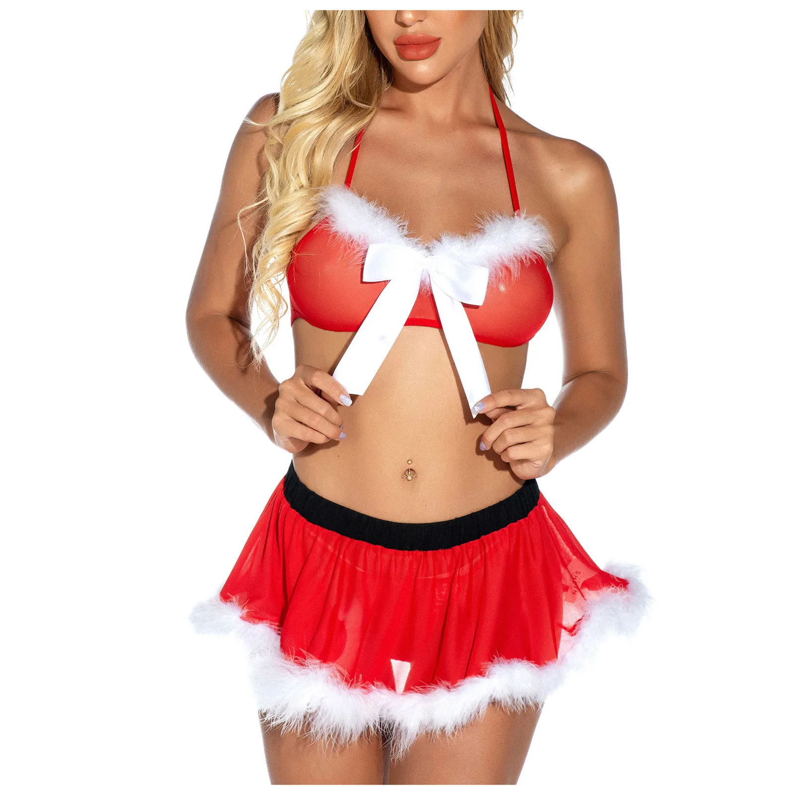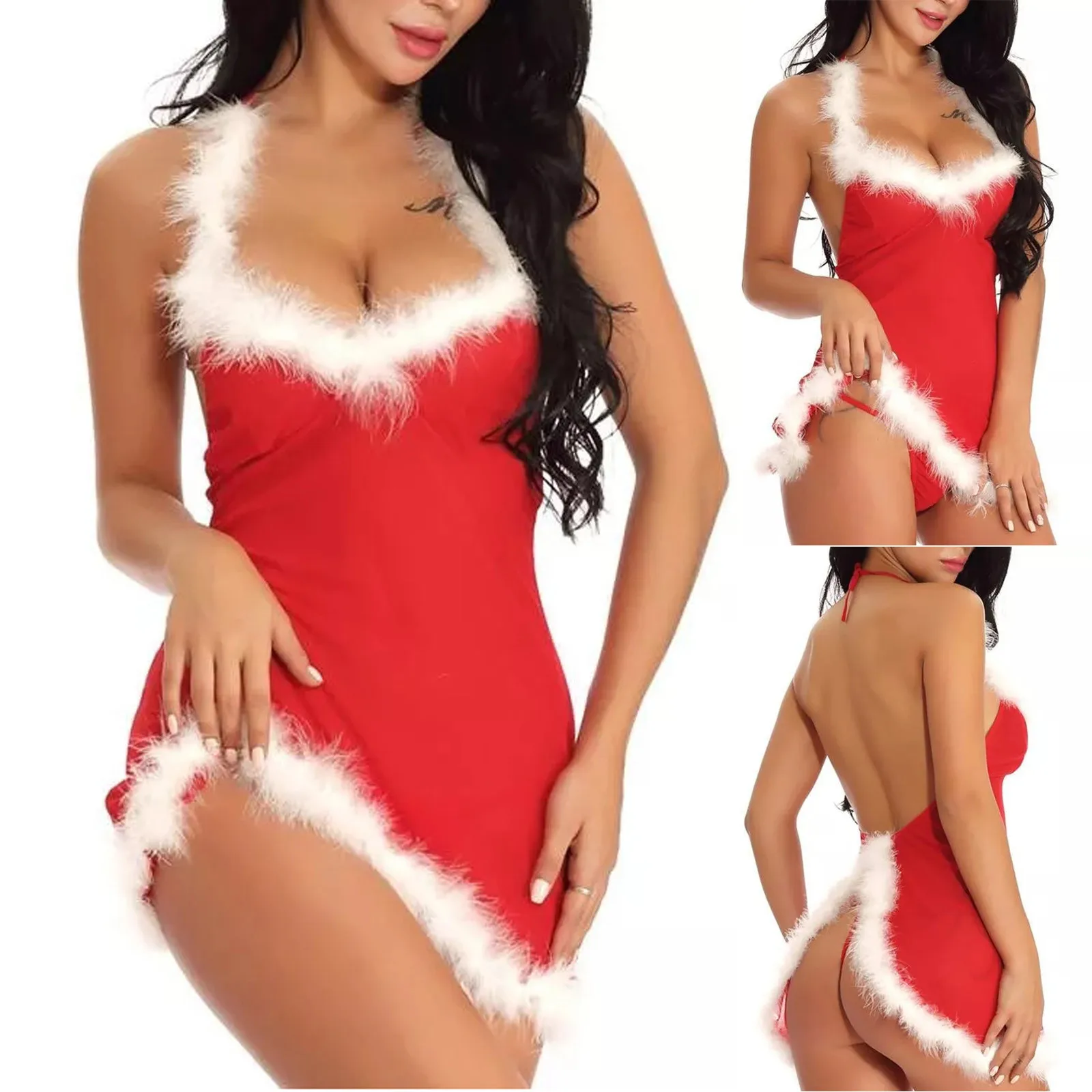 Женские сексуальные комплекты, рождественское праздничное Красное ажурное нижнее белье, комплект стрингов, ночная рубашка, нижнее белье, женский костюм, платье, сексуальное экзотическое