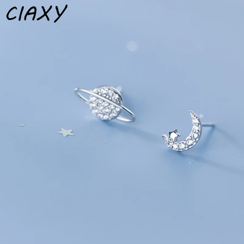 Женские асимметричные серьги CIAXY, серьги из стерлингового серебра 925 пробы в виде Луны с цирконом, Роскошные ювелирные украшения