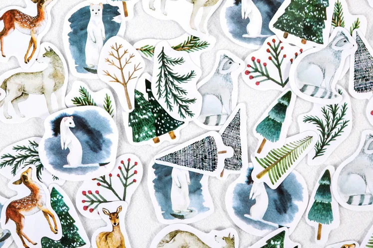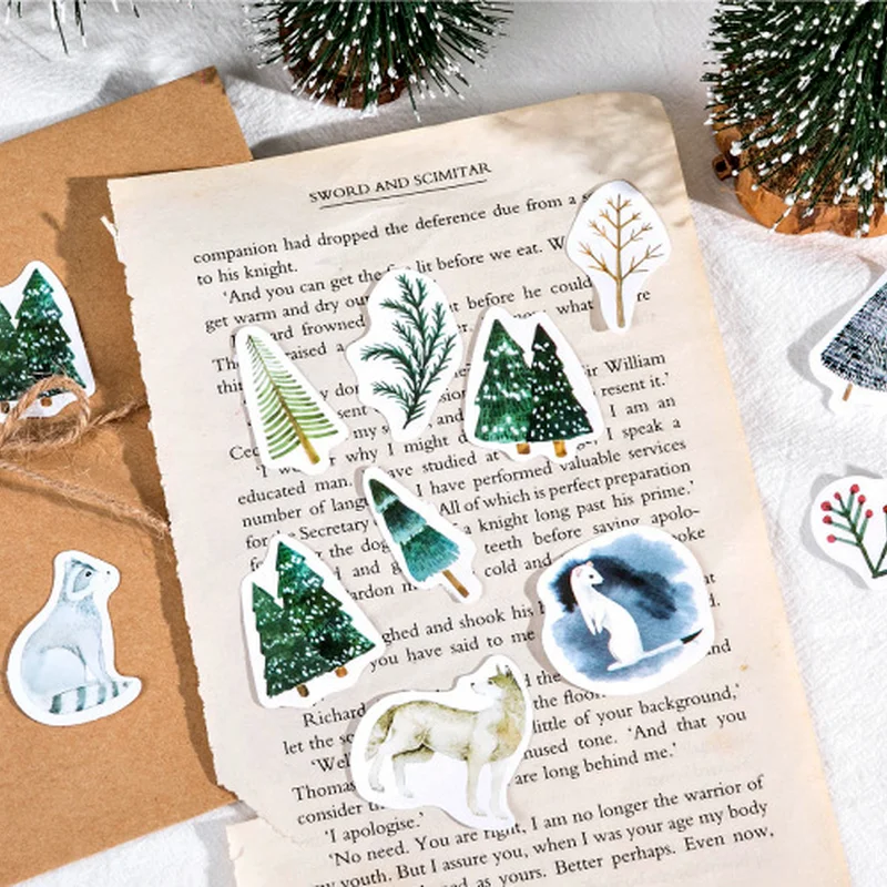 45 шт., декоративные бумажные мини-наклейки в виде леса