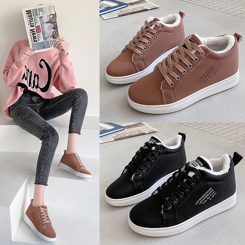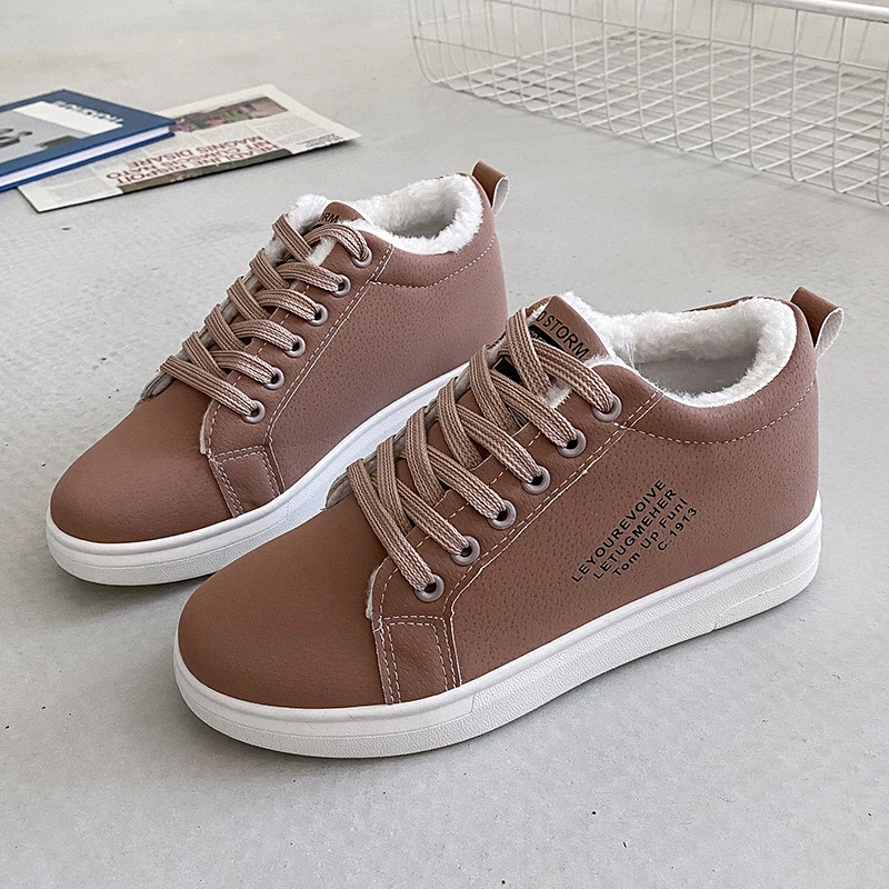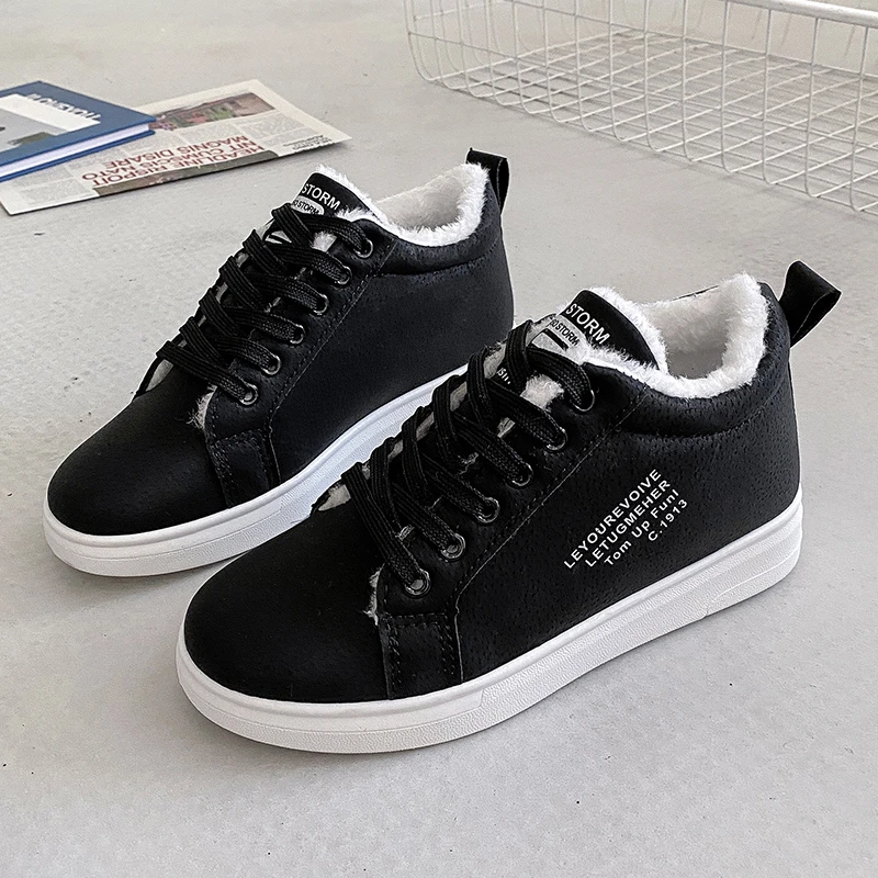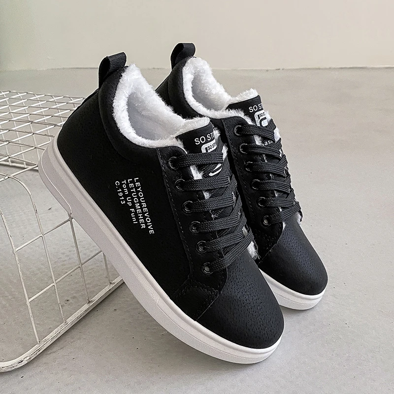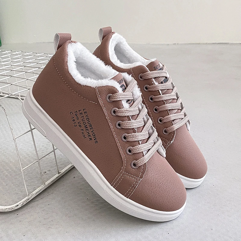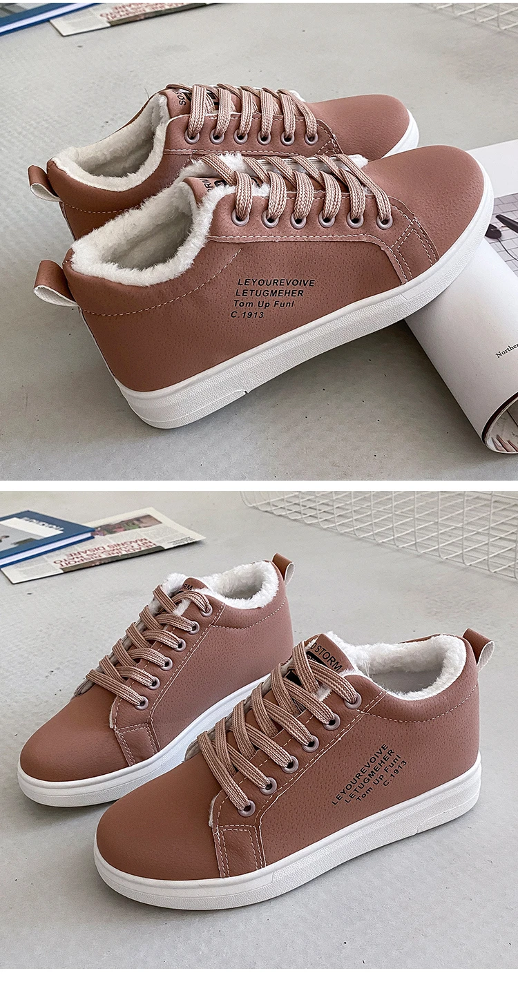 Зимняя Брендовая женская обувь, теплая плюшевая женская повседневная обувь на меху, модные кроссовки на шнуровке, женские зимние ботинки на платформе