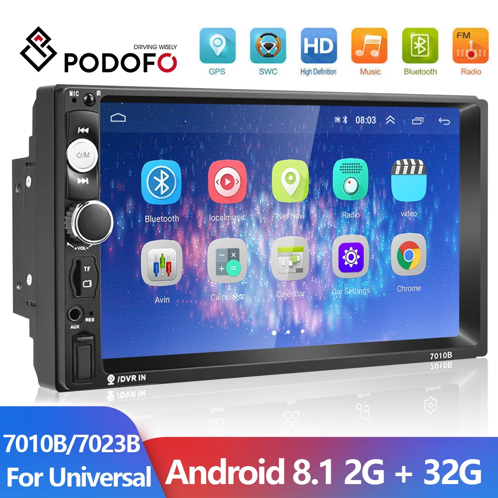 Podofo 2 Din Android 8,1 автомобильное радио 7 "Bluetooth стерео Мультимедийный плеер авторадио MP3 MP5 сенсорный экран авто радио Поддержка Камера заднего вида