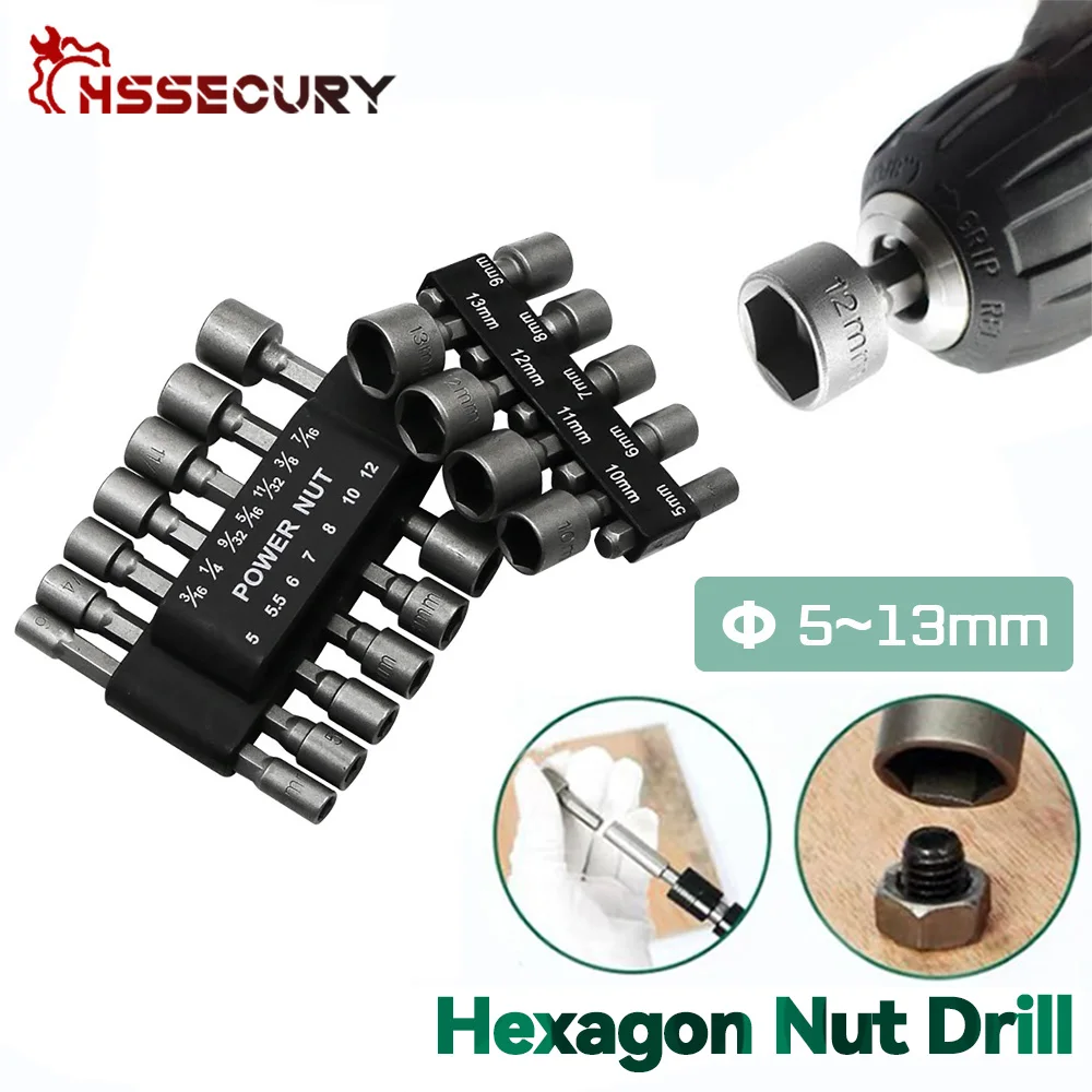 14 шт. Шестигранная отвертка для дрели Шестигранная отвертка с шестигранным углублением втулки Насадки Набор гаек 5-12 мм адаптер сверла набор инструментов