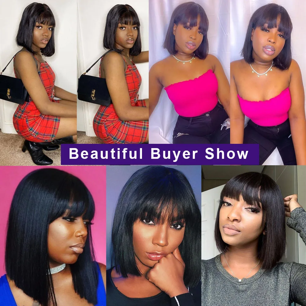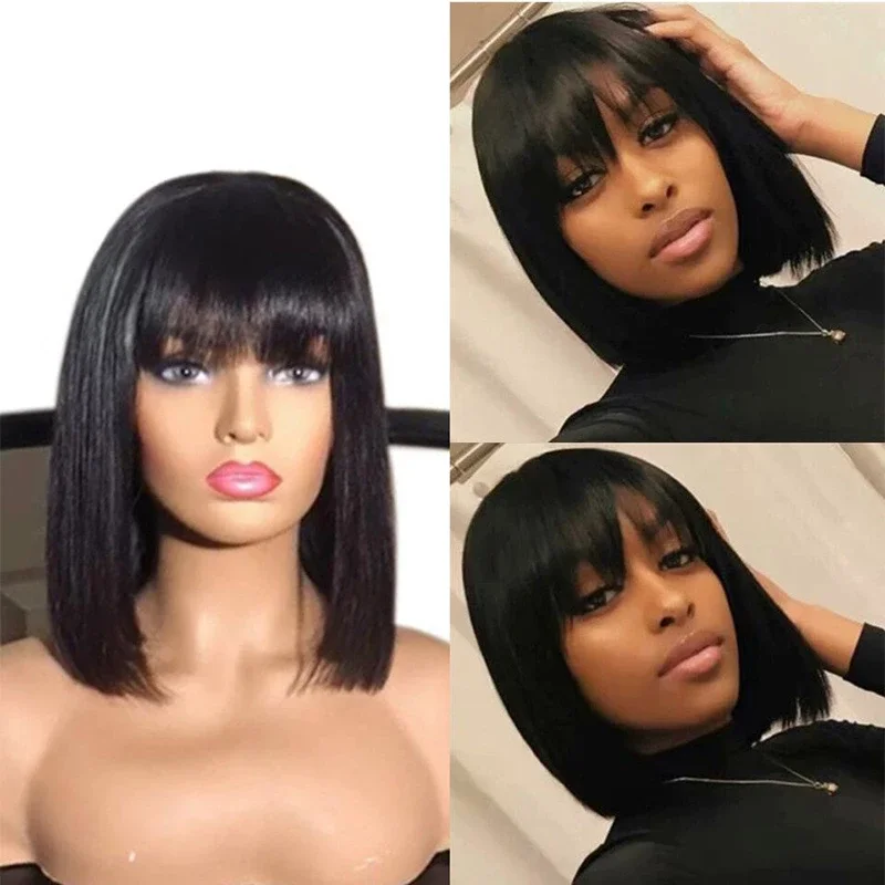 Straight Bob WigStraight Human Hair Wig with Bangs