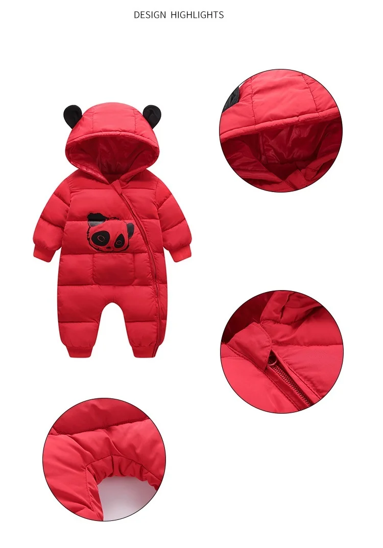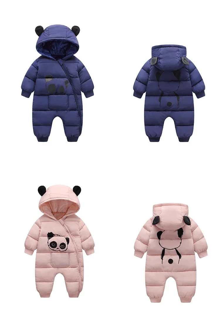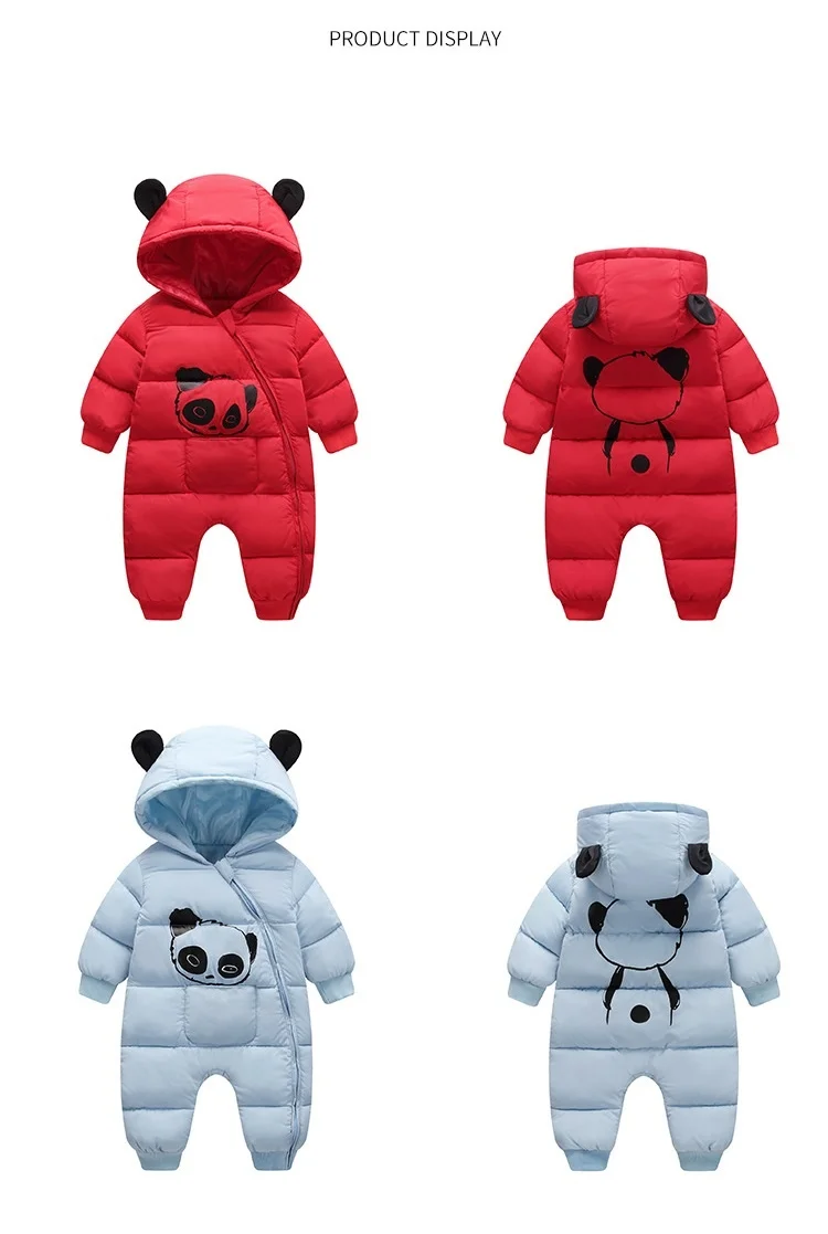 Новинка 2021, зимний детский комбинезон, толстый теплый комбинезон для новорожденных девочек с мультипликационным рисунком панды, комбинезон для малышей, комбинезон для маленьких мальчиков
