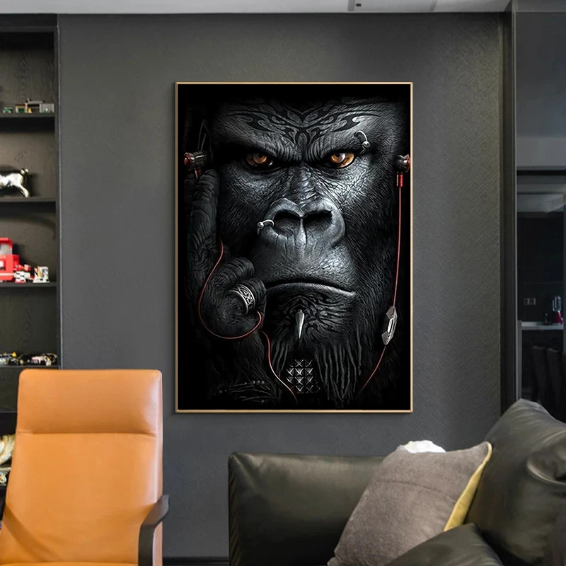 Абстрактный постер с животными и принт, черная Горилла, обезьяна, настенные художественные картины, холст, живопись для гостиной, украшение для дома и офиса