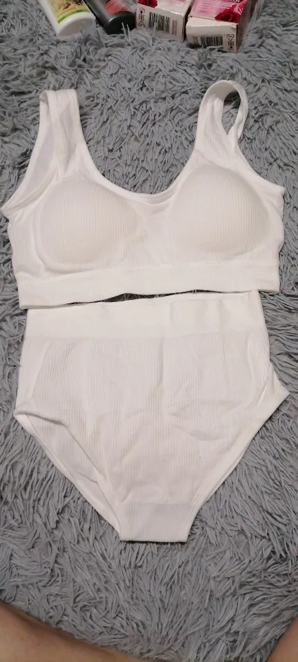 Хороший наборчик трусики и топ , понравилось то , что в топе поролоновые вставочки, не имеет косточек носить очень легко. Пошив выполнен очень аккуратно, нитки не торчат.После стирки в таком же состоянии.Качество изделия отличное - комплект мягкий и практически не ощущается на теле.Доставка быстрая.Заказала себе в белом цвете среди множество расцветок.