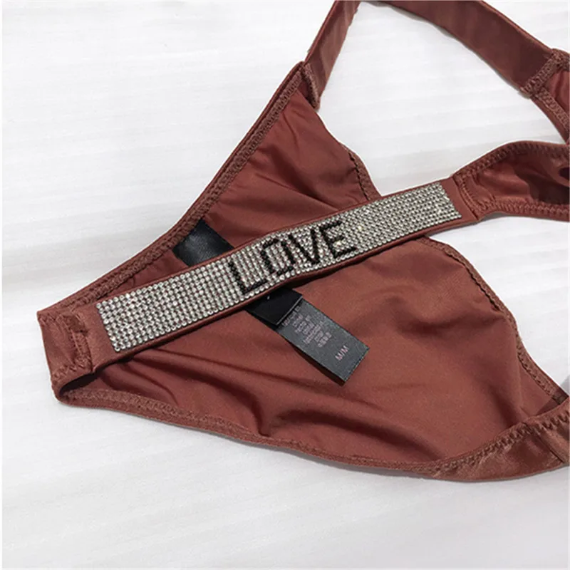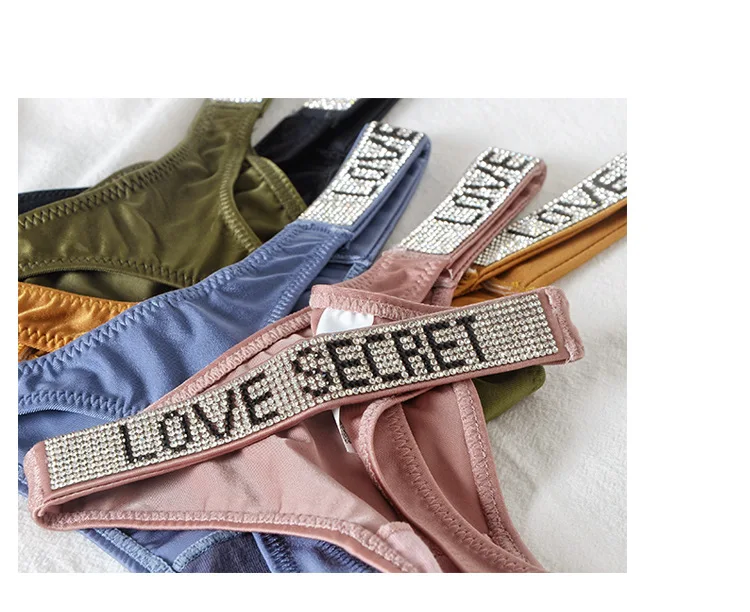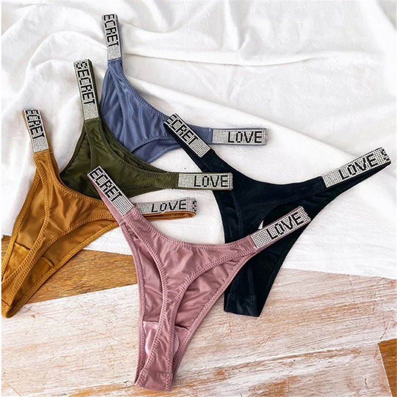 Роскошные трусики с надписью стразы, сексуальные стринги с заниженной талией, атласное белье, бесшовные трусики танга, стринги, нижнее белье