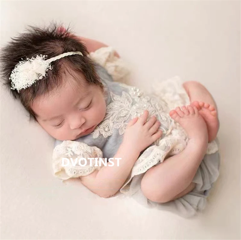 Dvotinst Новорожденный ребенок фотографии реквизит кружевные наряды Цветочное платье повязка на голову комплект из 2 предметов Фотография Студия Съемка фото реквизит