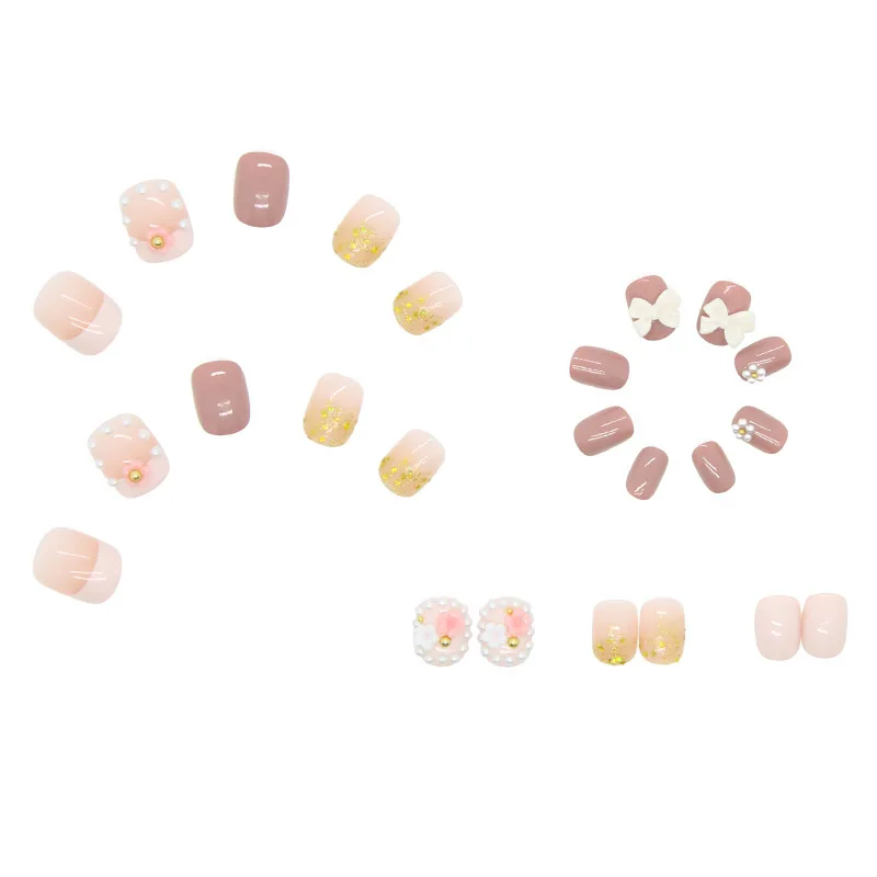 2021 24 шт белый бант накладки для ногтей милый стиль Клей Тип съемный короткий абзац Маникюр экономит время накладные накладки для ногтей