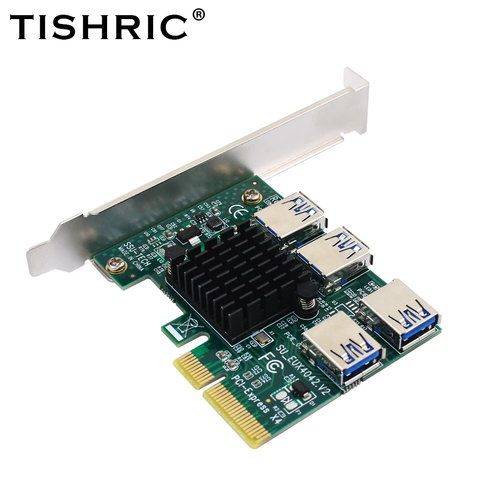 TISHRIC PCI Express Multiplier PCI-E Riser 010 1-4 PCIE USB 3,0 Hub 4X X16 009S Riser для видеокарты для ETH BTC Miner Mining