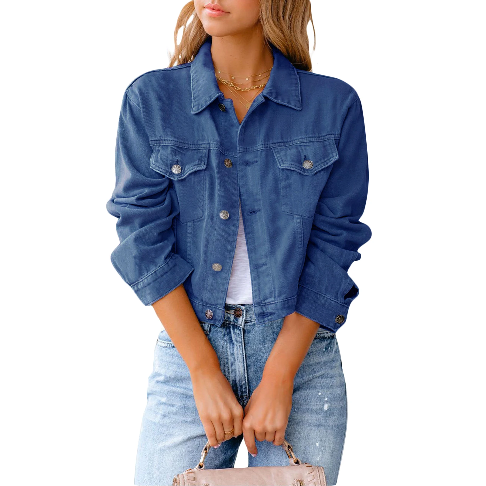 Женская джинсовая куртка на пуговицах, с длинным рукавом и карманами