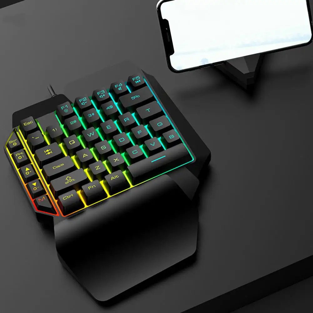 K15 клавиатура светящиеся персонажи сильная устойчивость RGB с одной рукой Механическая игровая клавиатура для компьютера Описание: Привлекательный эффект освещения позволяет каждому стуку ослепить. Увеличенная и Расширенная интегрированная подставка для ладони обеспечивает поддержку свисающего запястья. Плавающий колпачок, удобная перкуссия и сильная устойчивость. Он имеет мощную адаптационную функцию, которая может адаптироваться к основным симуляторам на рынке. Изготовлен из высококачественного АБС-пластика и металлического материала, он прочный в использовании. Длина клавиатура является 25,5 см, ширина 18,2 см Высота 2,5 см. Подходит для компьютерных игр. A-это игра для мира, а B-обычное издание. Название товара: клавиатура Материал: АБС-пластик, металл Срок службы: >50 миллионов раз Операционной Напряжение:> 1,5 кг Тип интерфейса: USB Рабочий ток: <200 мАч Провод Длина: 1,5 м Количество ключей: 39 шт. Клавиатура силы:> 1,5 кг Версия: A: издание Игры для мира, B: обычное издание Материал ключа: АБС двухцветная инъекция Информация о размере: 25,5 см x 18,2 см x 2,5 см/10,04 "x 7,17" x 0,98 "(прибл.) Примечания: Благодаря светильник и экрана Цвет Товара может быть s светильник ly отличается из-за характеристик монитора компьютера. Возможны незначительные отклонения в размерах из-за различных измерений вручную. Посылка включает в себя: 1 X клавиатура