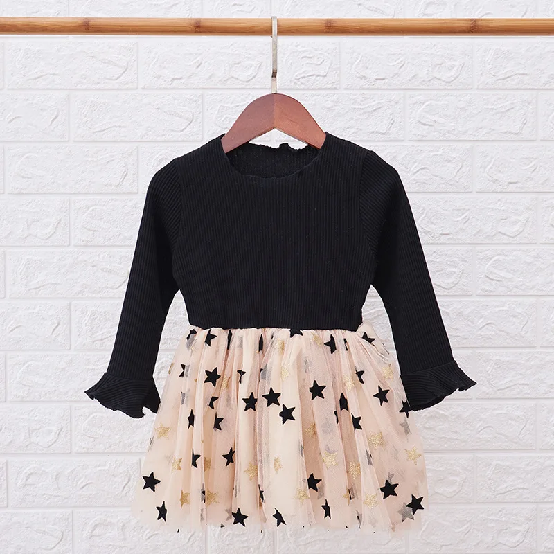 Зима 2021, вязаное шифоновое платье для девочки, Рождественская вечеринка, детская одежда с длинным рукавом, Детские платья для девочек, Новогодняя одежда