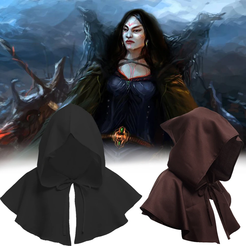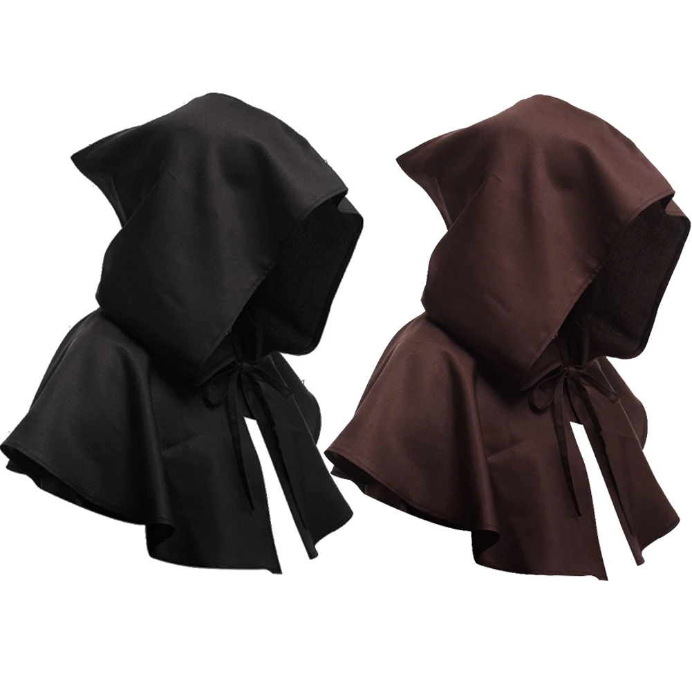 Детский средневековый костюм унисекс для взрослых, плащ с капюшоном, Короткий плащ, черный, коричневый, костюмы на Хэллоуин, пальто