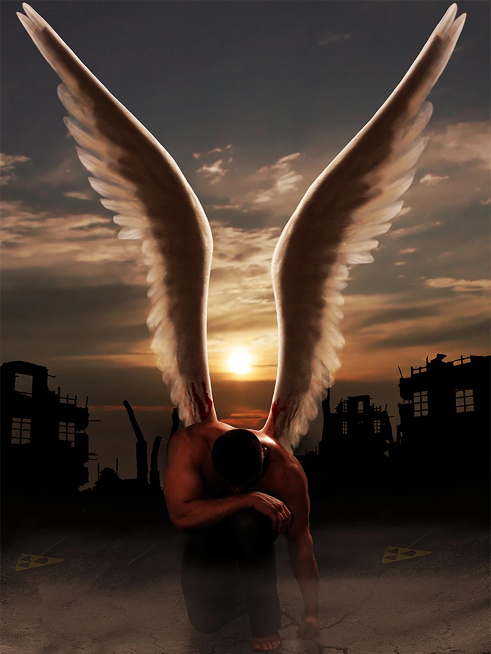 Классическое крутое посеребренное кольцо крылья с ангелом для мужчи...