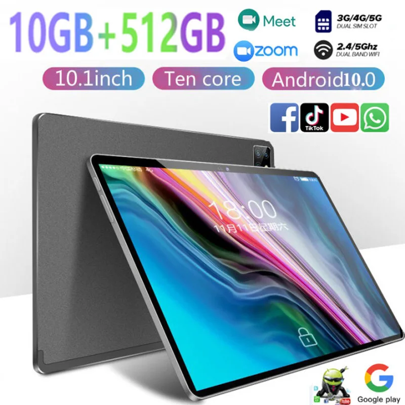 9-дюймового планшетного ПК, Новый андроид 10.1 Планшеты 3G/4G Телефонный звонок Octa Core 10 ГБ + 512 ГБ Встроенная память Bluetooth Wi-Fi 2.5D Сталь Экран TabletBasic информация: