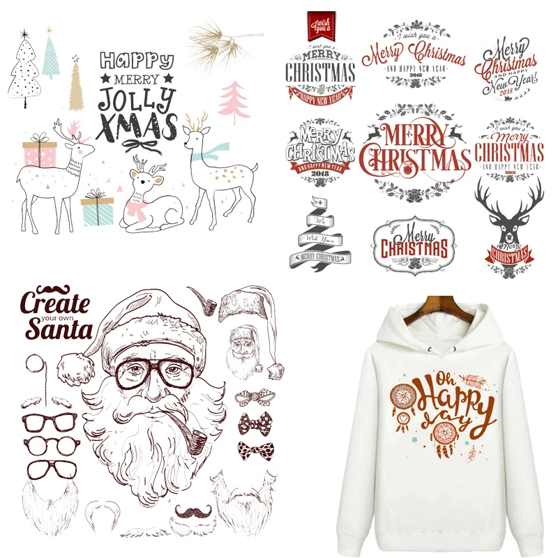 Симпатичные рождественские термонаклейки для самостоятельного нанес...